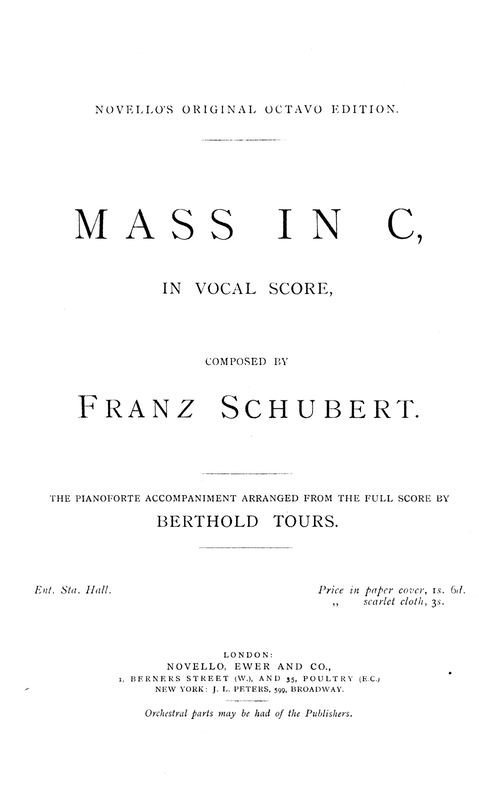 | Extra Information | Schubert added the 2nd setting of the "Benedictus", for chorus only, in 1828 as a substitute for original version featuring soprano solo |