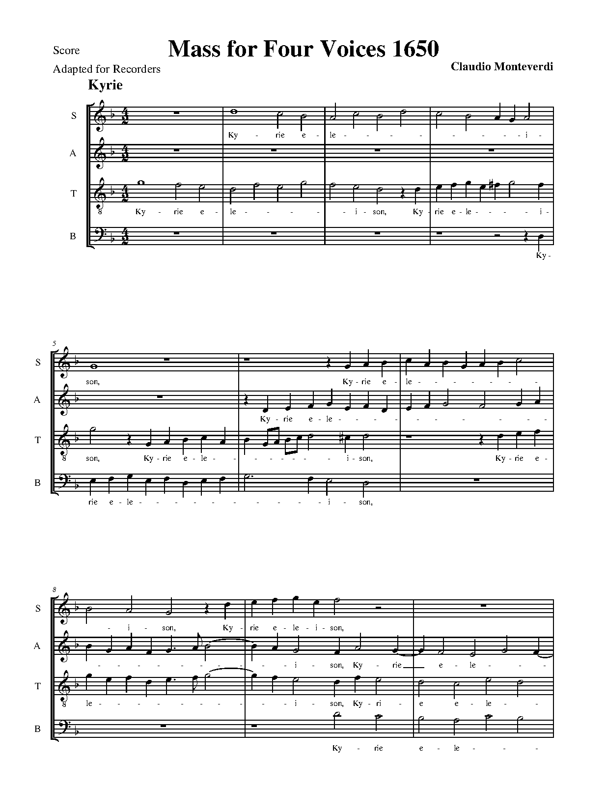 Messa a quattro voci da Cappella (Monteverdi, 1650)