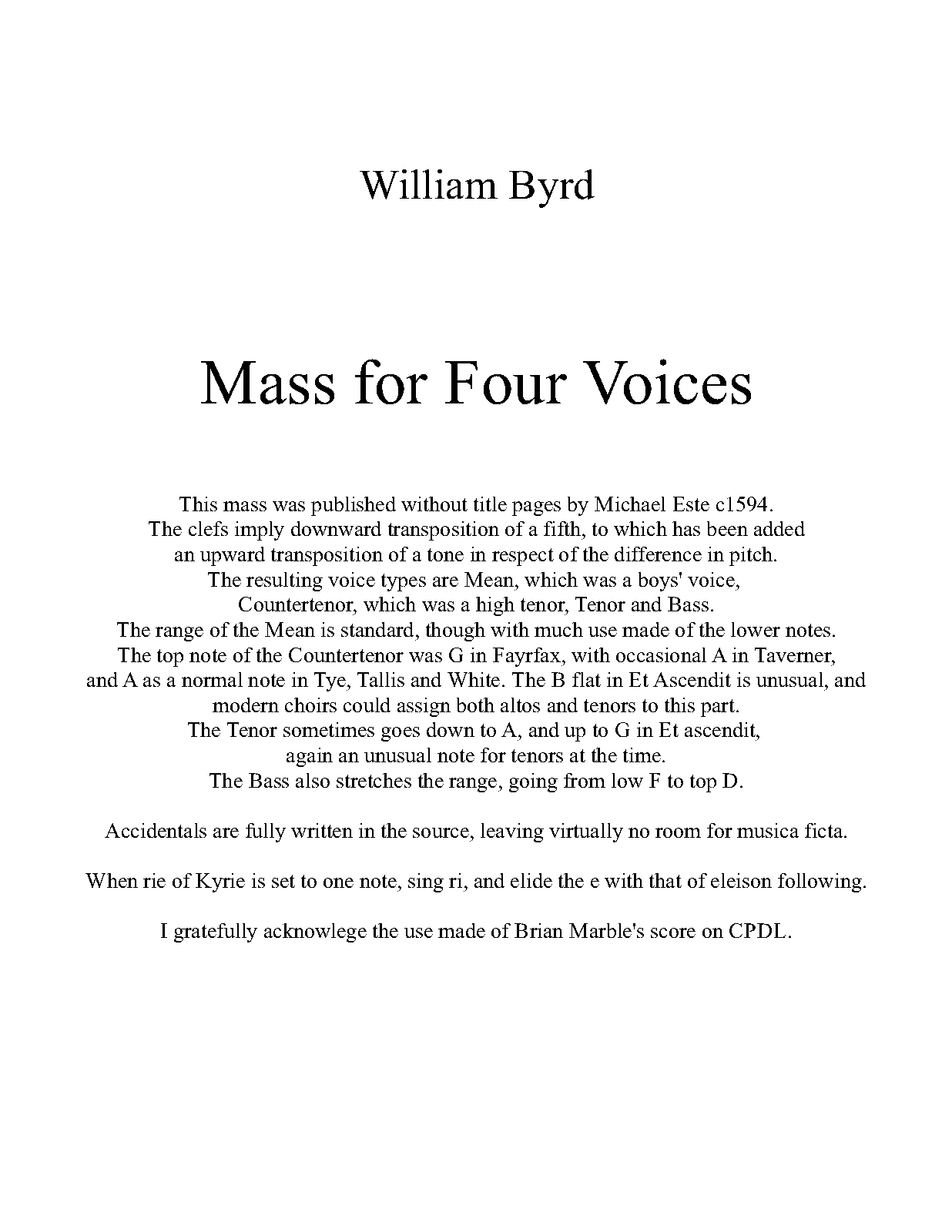| Extra Information | Benedictus often treated as part of Sanctus. |