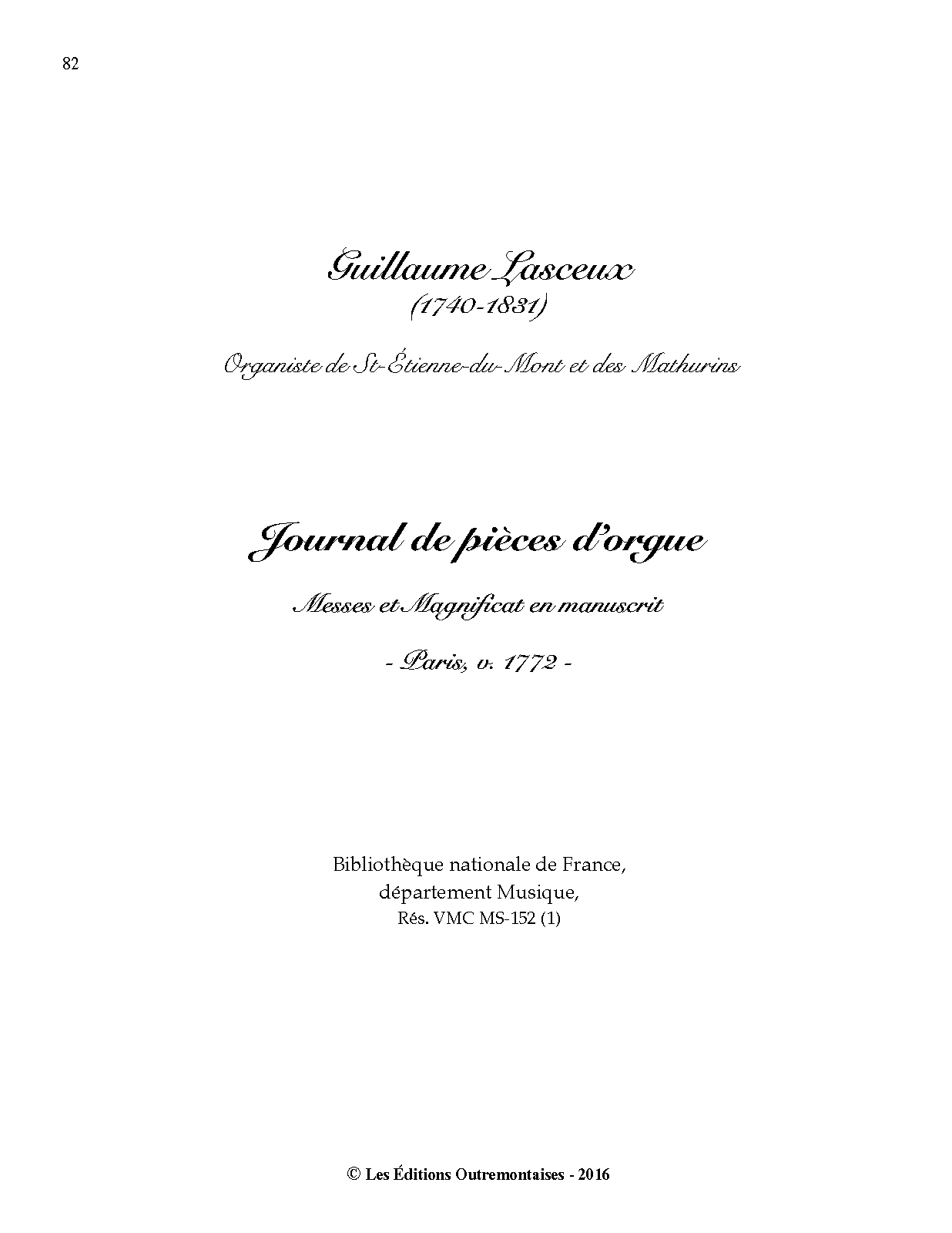| Year/Date of CompositionY/D of Comp. | 1772 from Journal de Pièces d'orgue |