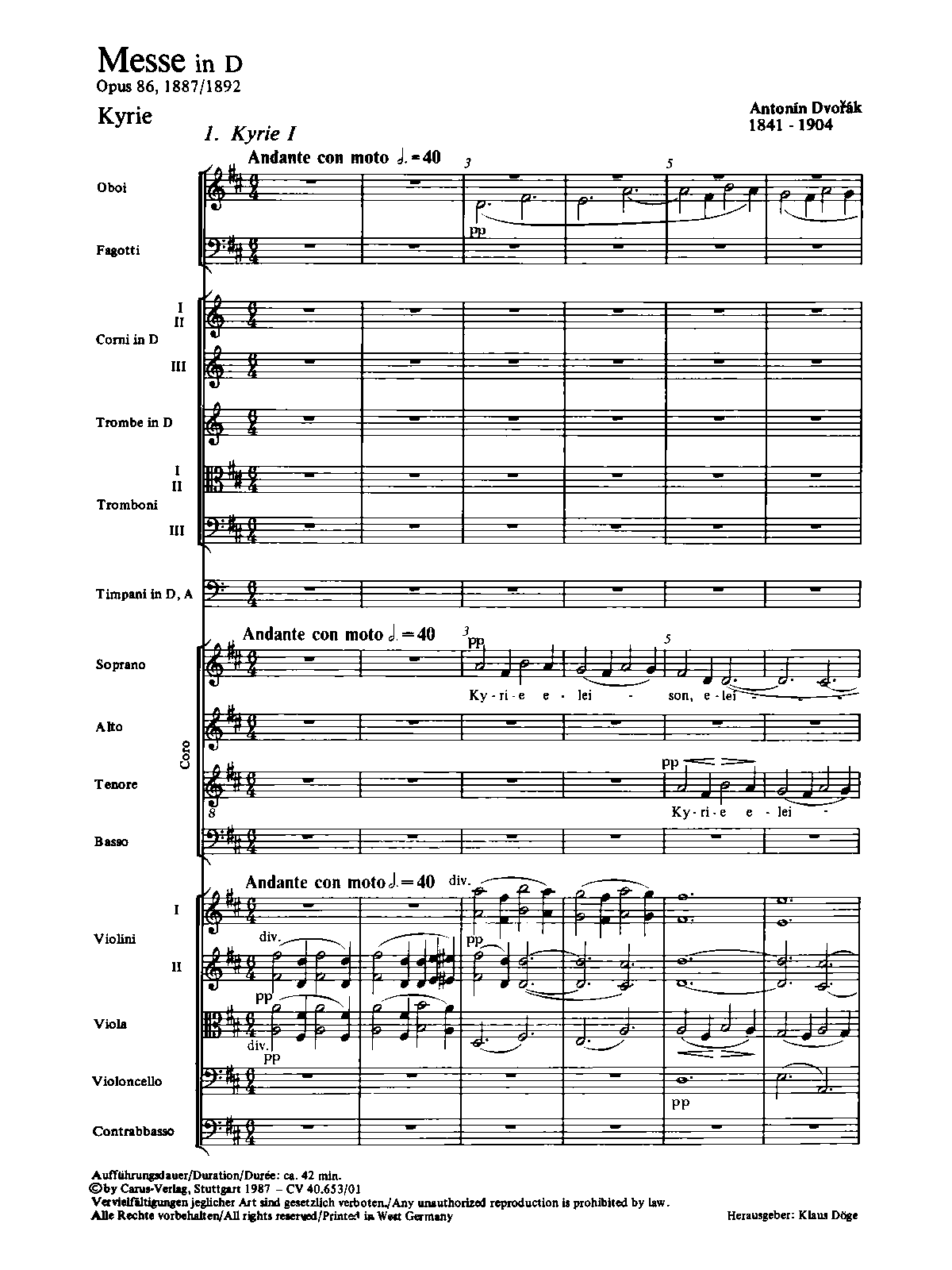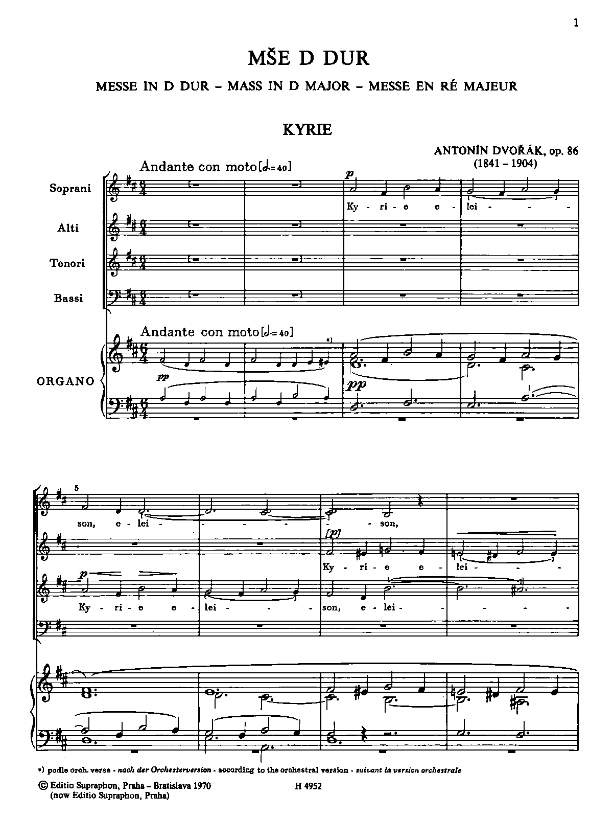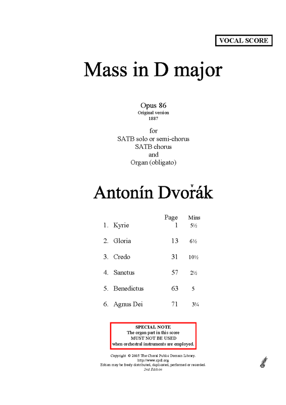 - Composed March 26 to June 17, 1887 for solo voices, chorus and organ (= B.153 / Op.86a)