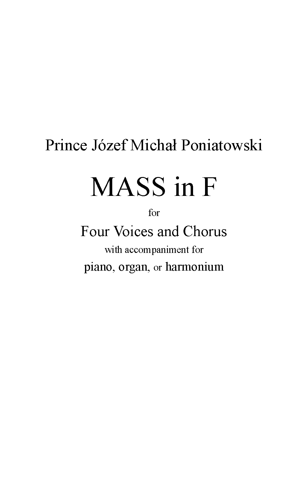 | Genre Categories | Masses; Religious works; For 4 voices, mixed chorus, orchestra; |