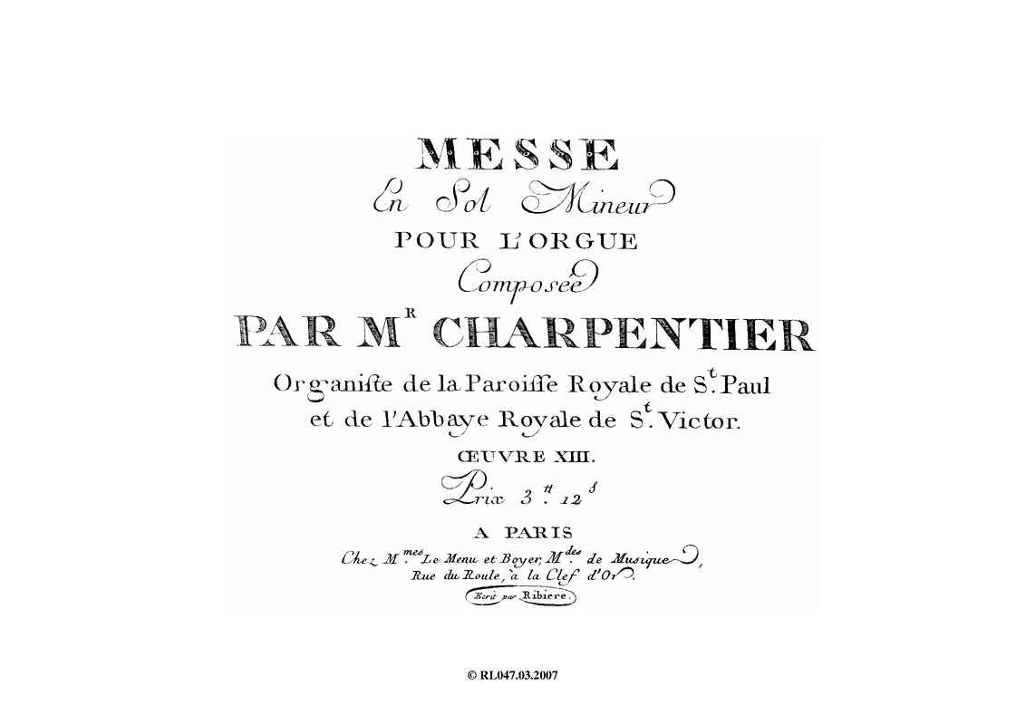 | Opus/Catalogue NumberOp./Cat. No. | Œuvre XIII |