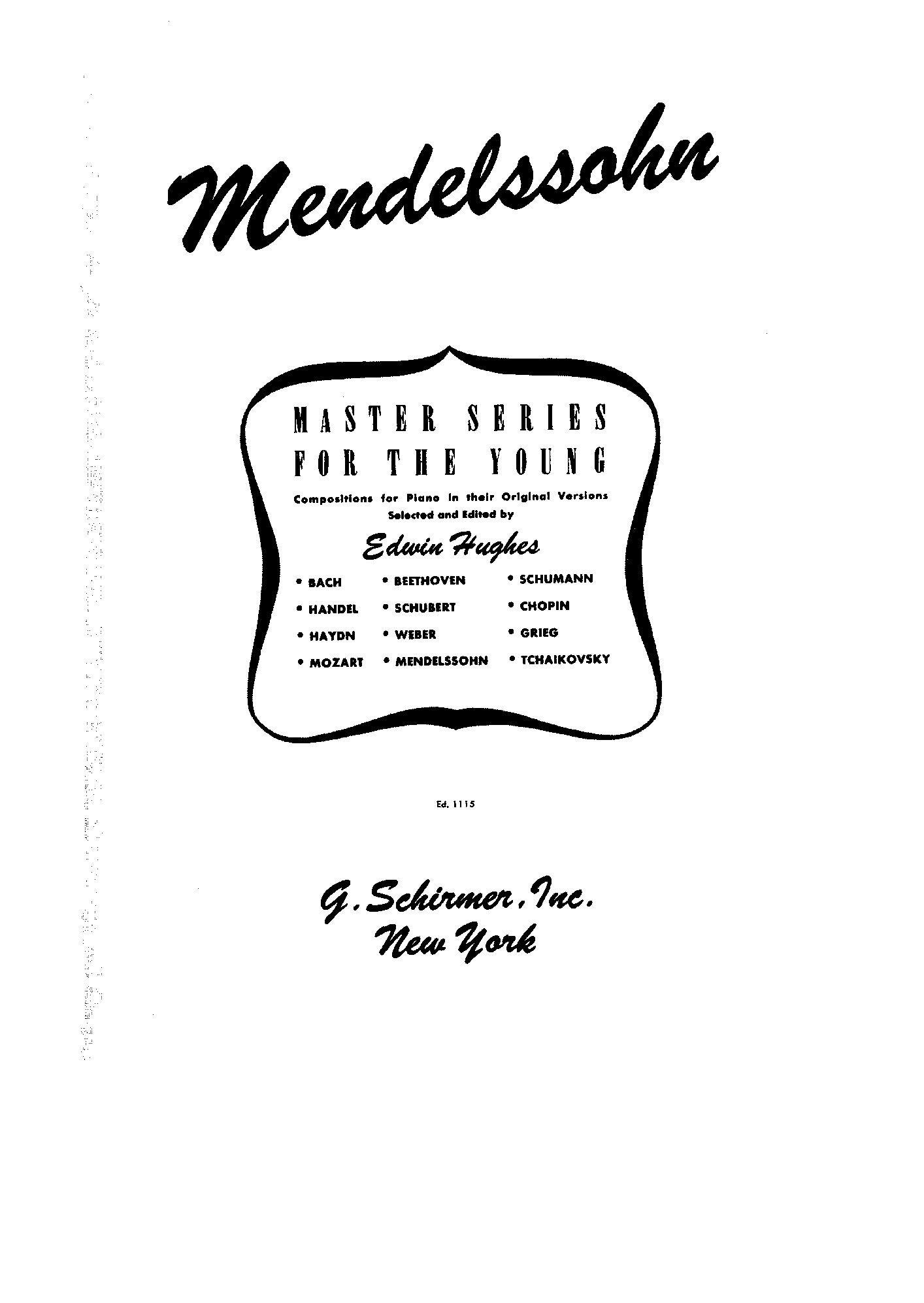 | Alternative. Title | Compositions for piano in their original versions by Mendelssohn. Selected and edited by Edwin Hughes. |