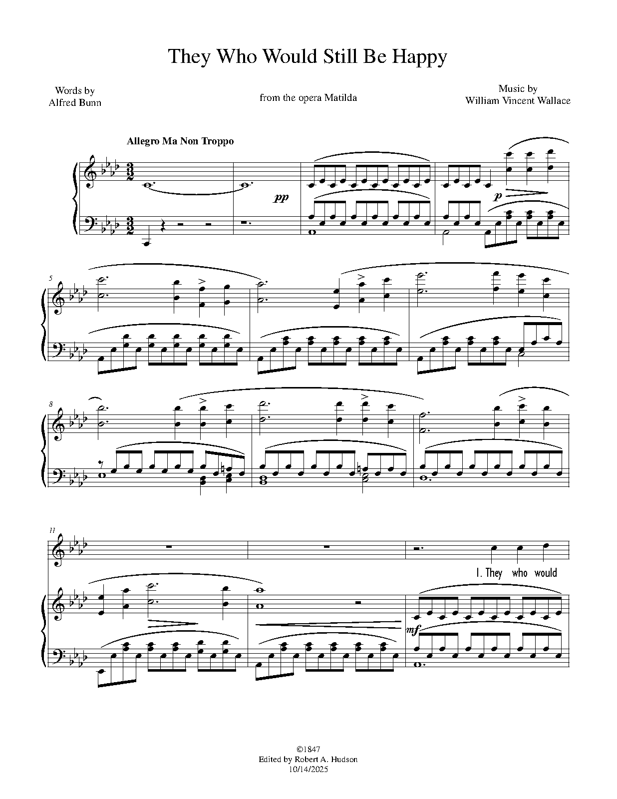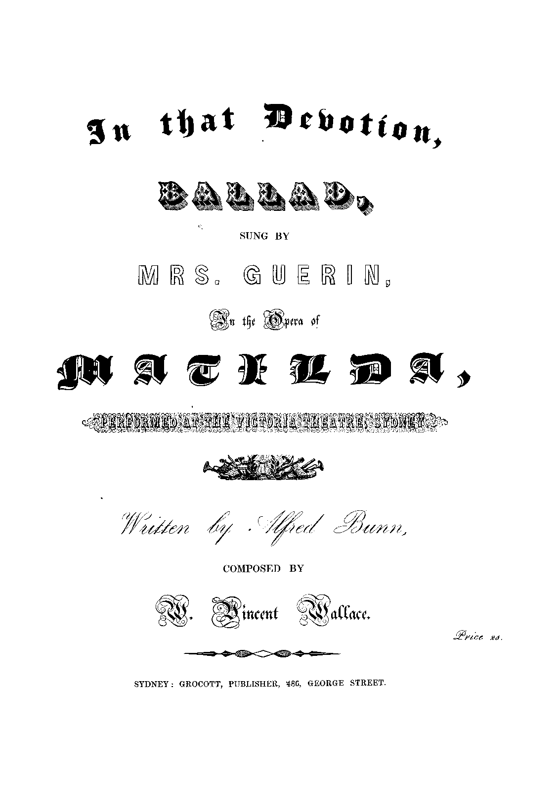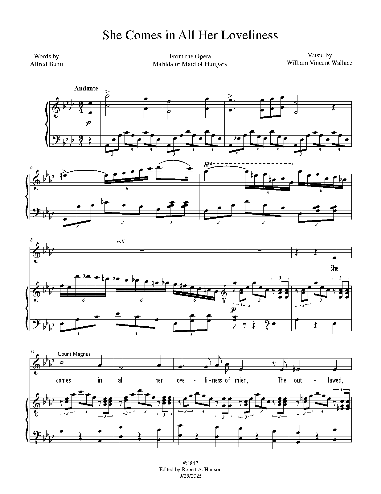 Premiere was 1847-2-15 according to the title page of the published libretto, 1847-2-22 according to Operone. Vocal score published by London: Cramer, Beale. Excerpts published in the same year by William Hall & Son of New York.