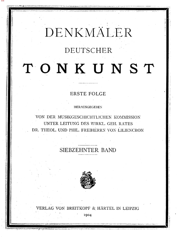 | Instrumentation | Voices: soprano, alto, tenor, bass; mixed chorus (SATTB) Orchestra: 2 violins, 3 violas da gamba or da braccio, viola bassa, continuo (violoncello, violon, organ) |