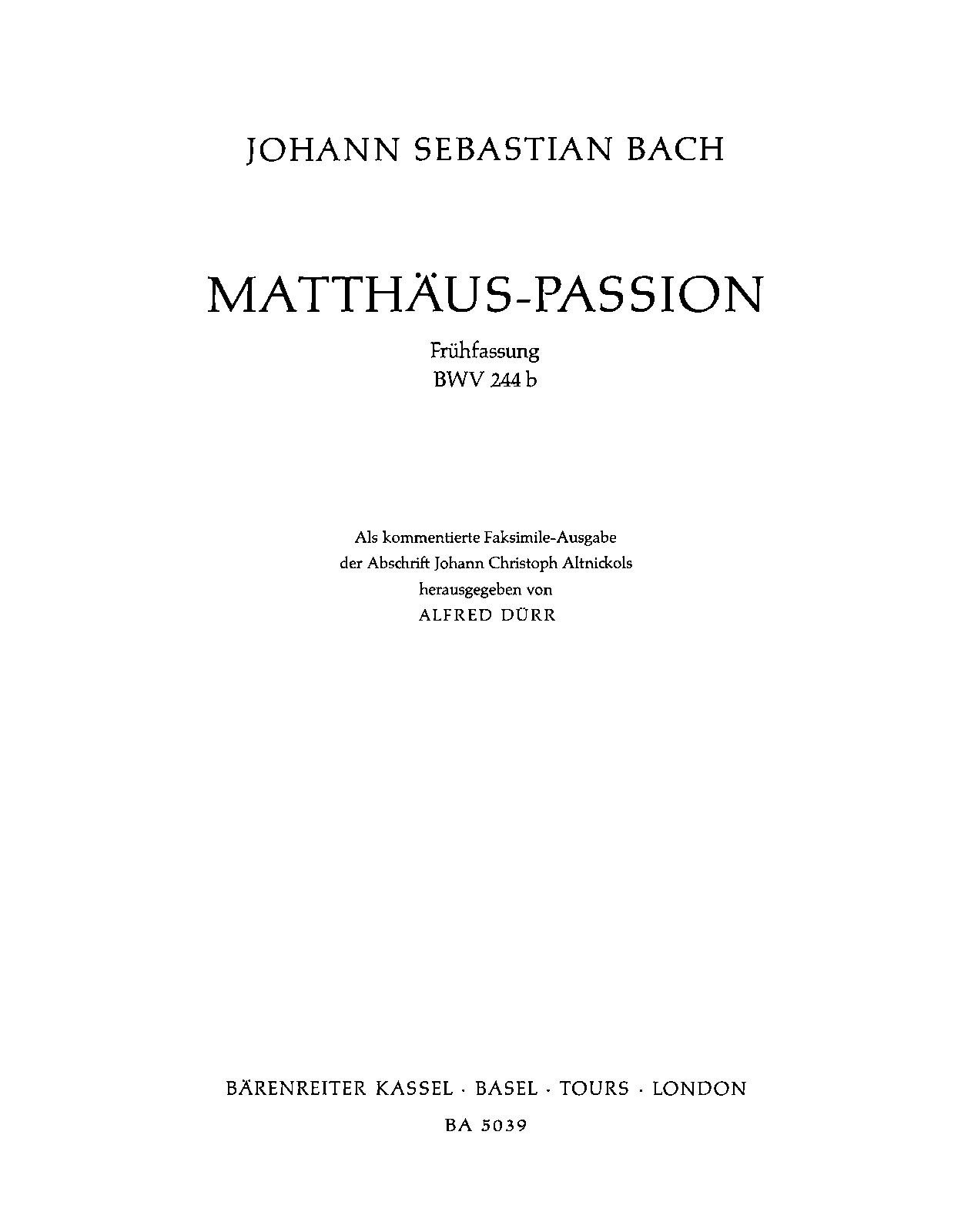 St. Matthew Passion ; The Passion According to St Matthew ; Passionsmusik nach dem Evangelisten Matthäus