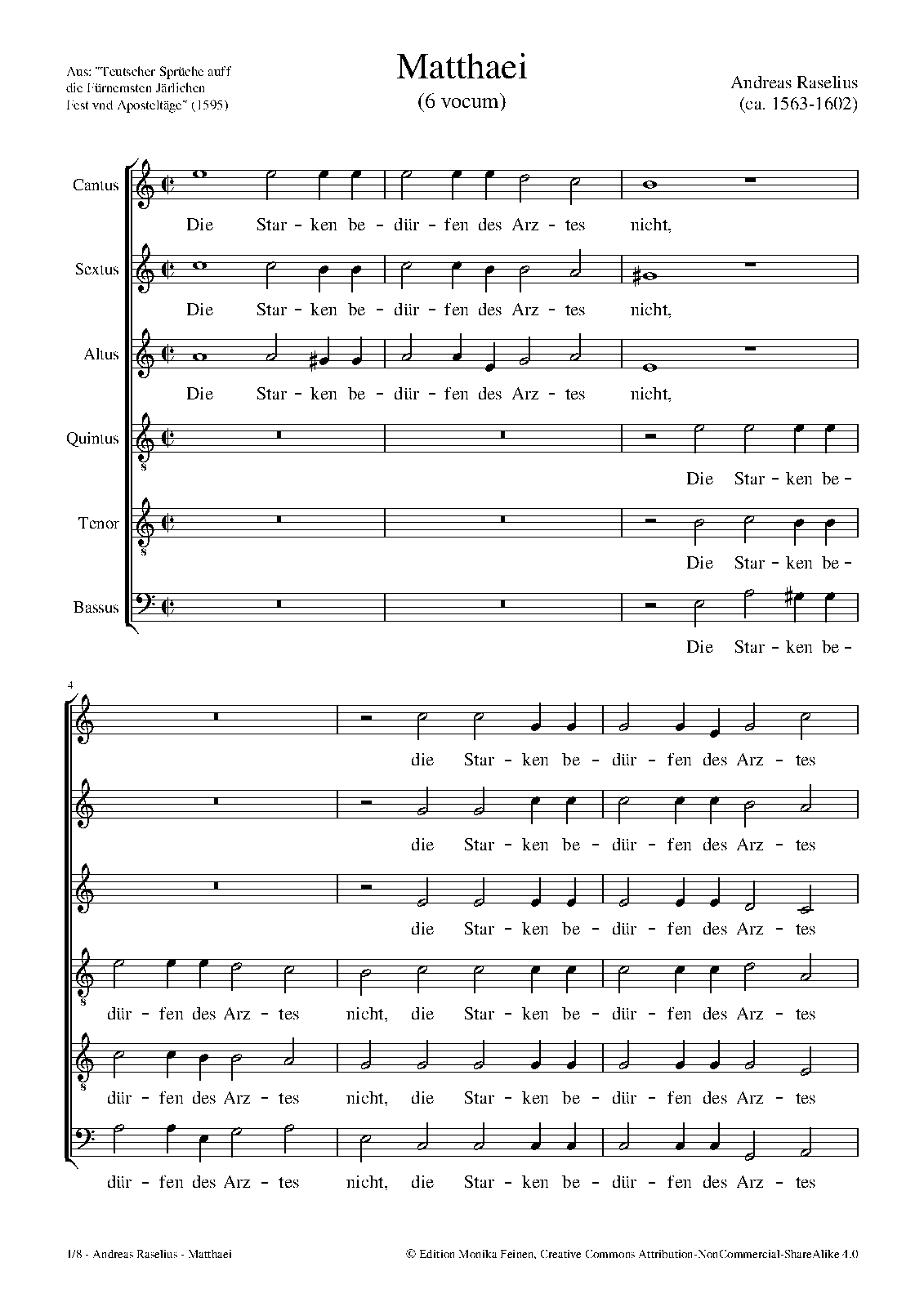 | First Publication | 1595 in Teutscher Sprüche auff die Fürnemsten Järlichen Fest vnd Aposteltäge |