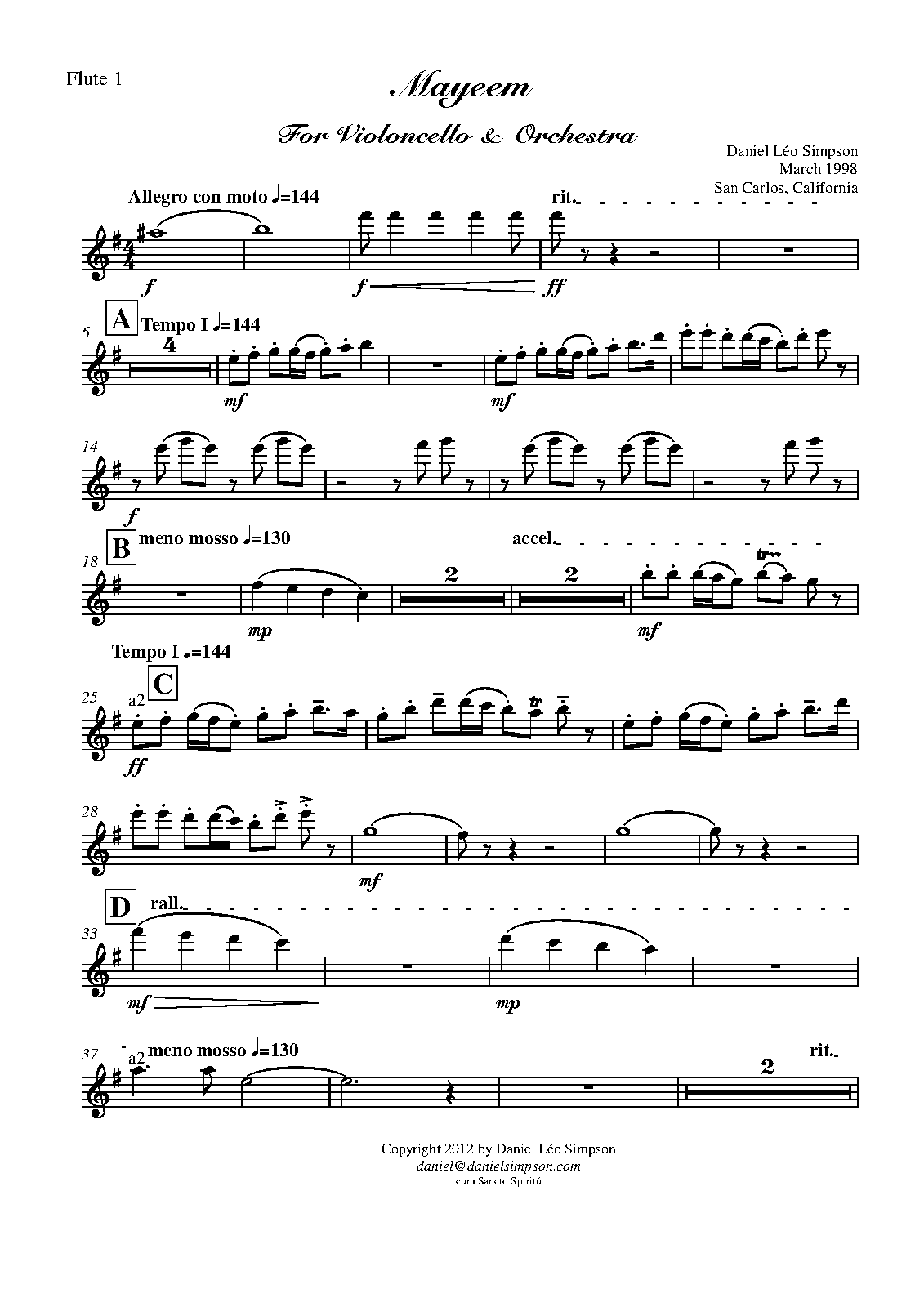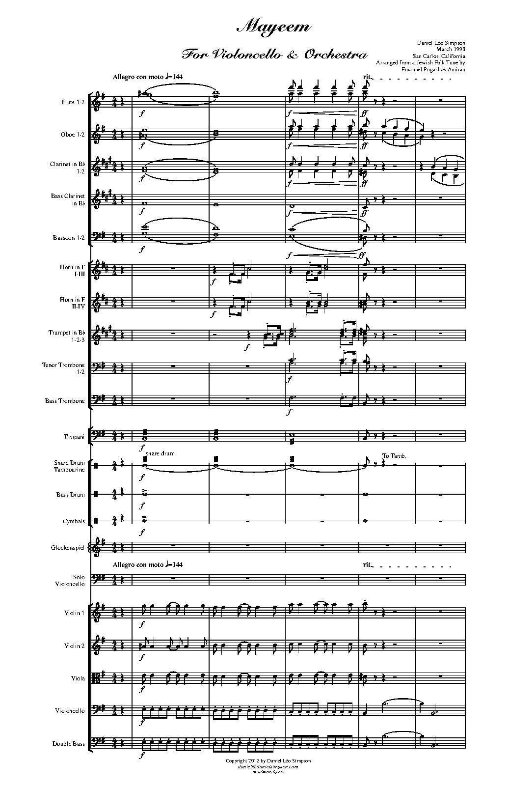 | Work Title | Mayeem for Violoncello and Orchestra |