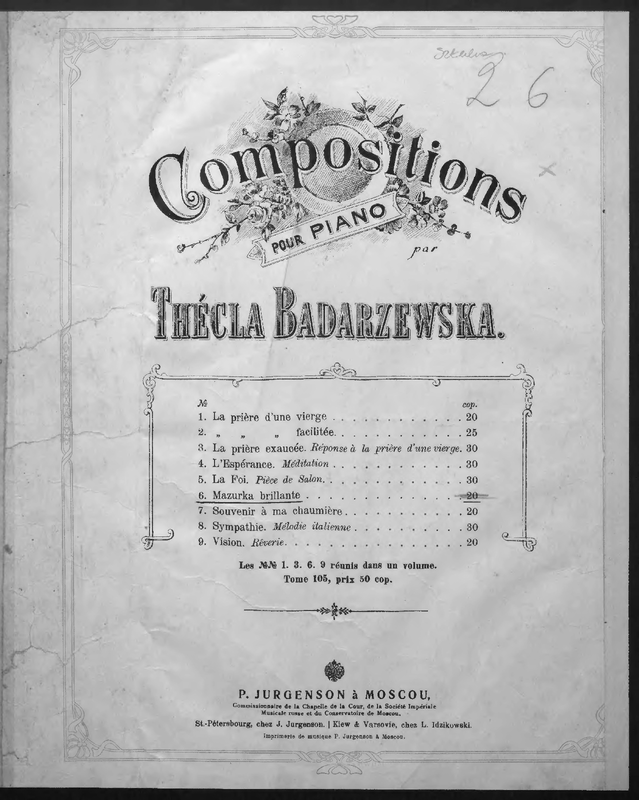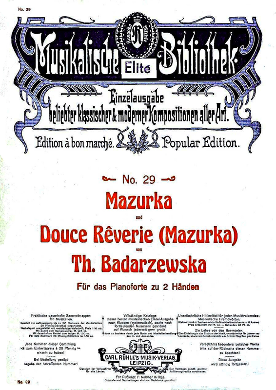 Monatsbericht (1863), p.38? (or perhaps published earlier- may be the Mazourka published in 1855 by Bote&Bock (Monatsbericht (1855), p.884 - and/or that published in 1858 by Paez and Challier. Then again, those might be her mazurka Douce rêverie. No way to know without finding them and comparing?)