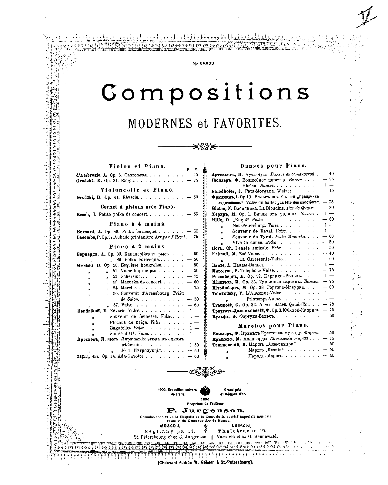 | Dedication | à Mlle. Cathérine Jatchinowsky. |