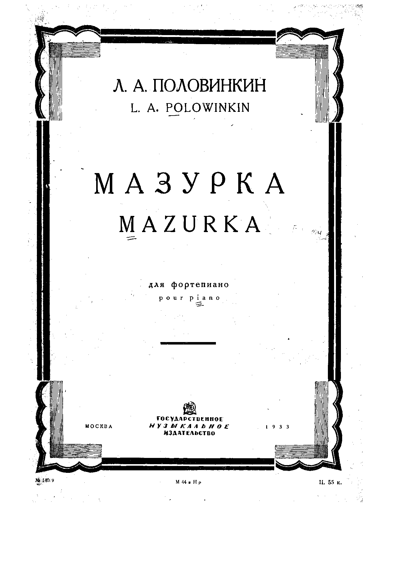 | First Publication. | 1933 - Moscow: Muzgiz |