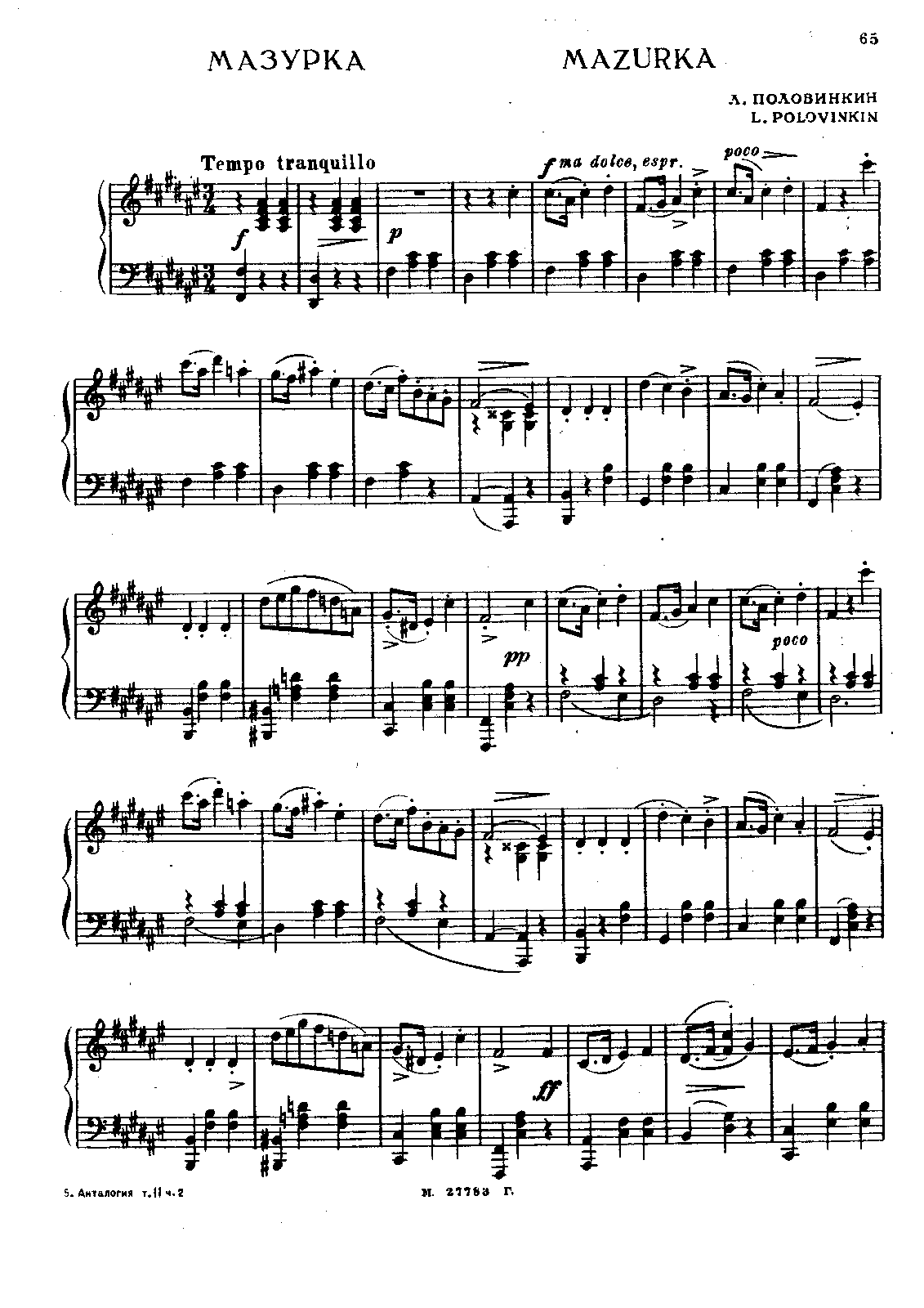 | Movements/SectionsMov'ts/Sec's | 1 mazurka |