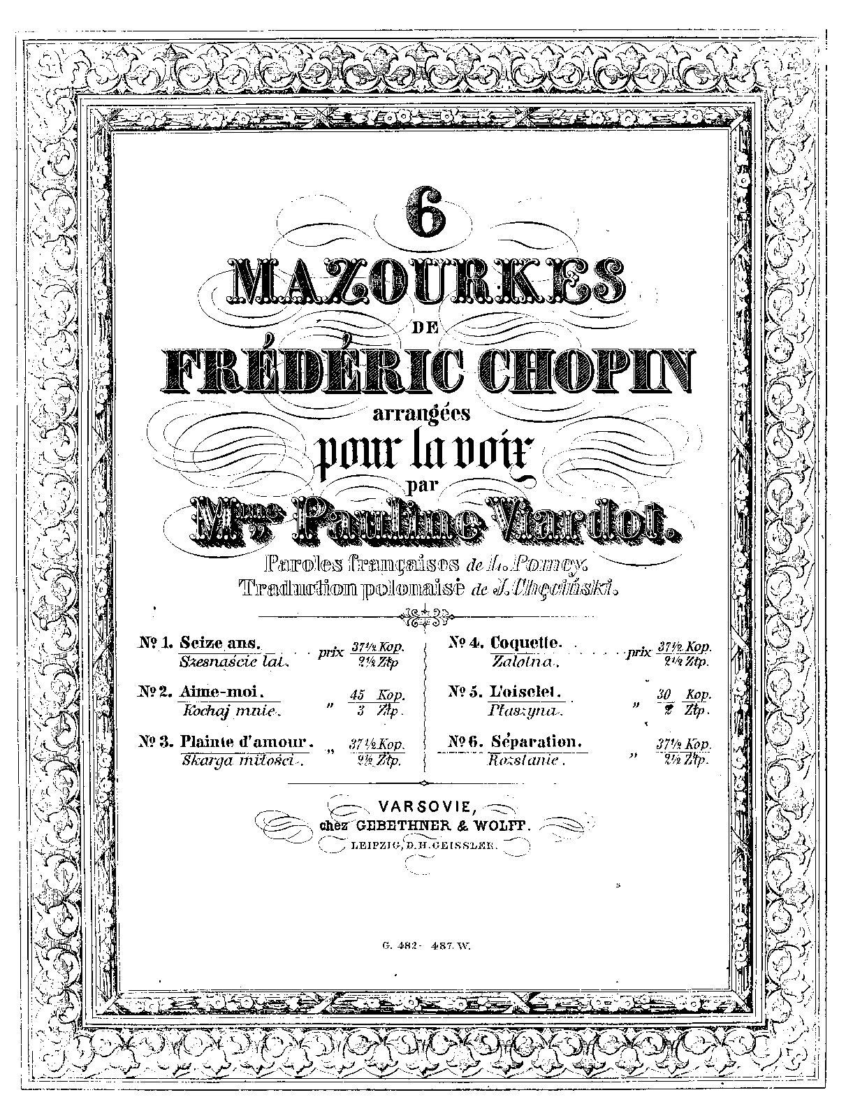 Publisher. Info. 6 Mazourkes de Frédéric Chopin arrangées pour la voix, No.6