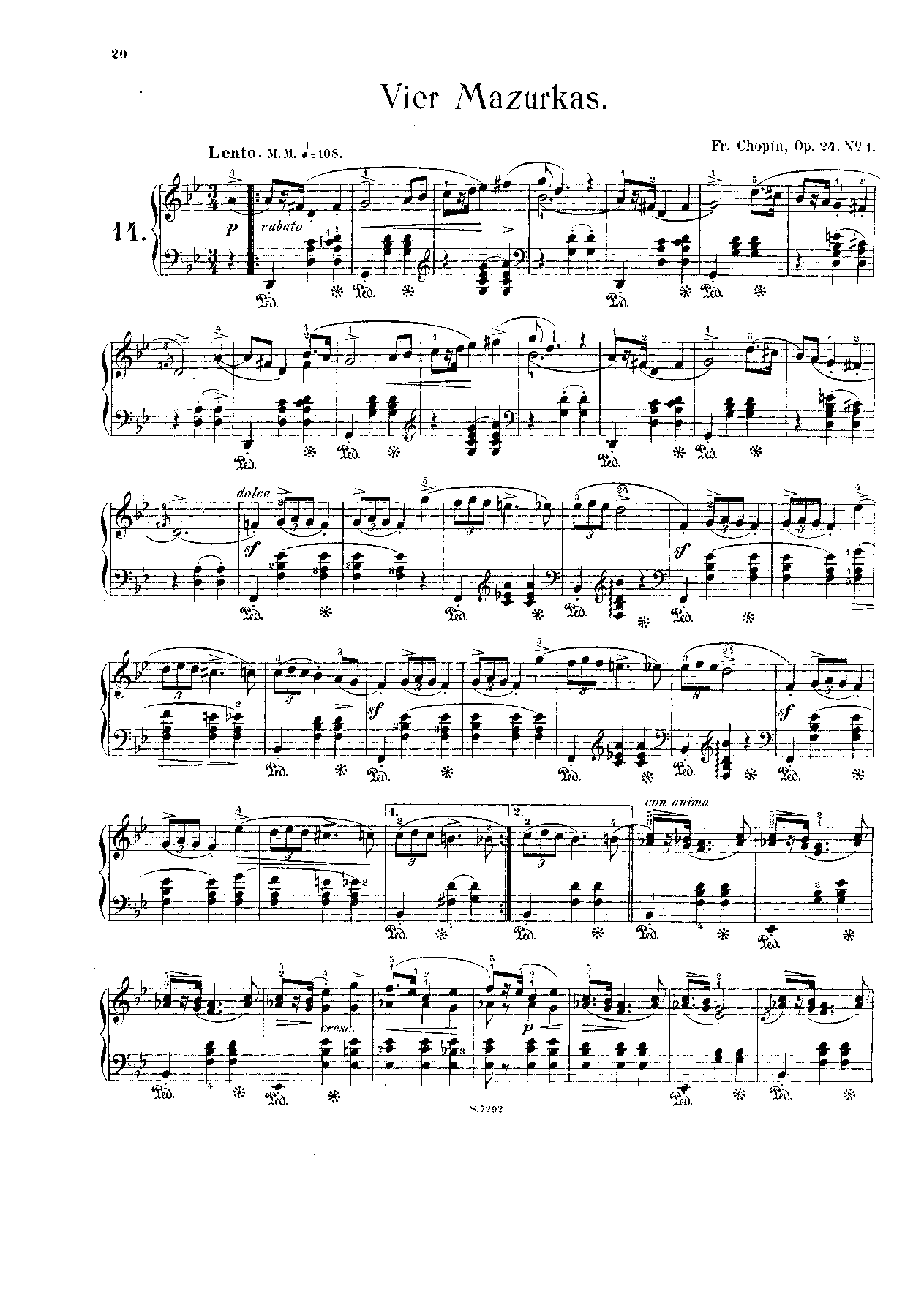 Name Aliases Mazurka's, opus 24 (Chopin); Four Mazurkas, Op. 24; Mazurkas, piano, op. 24; 4 Mazurkas, Op. 24; Μαζούρκες, Op. 24