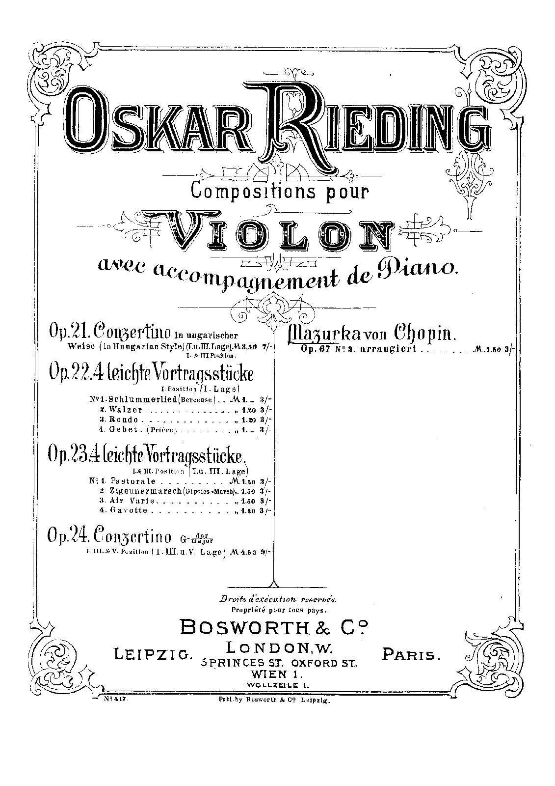 Publisher. Info. Leipzig: Bosworth & Co., 1905. Plate B. & Co. 6242.