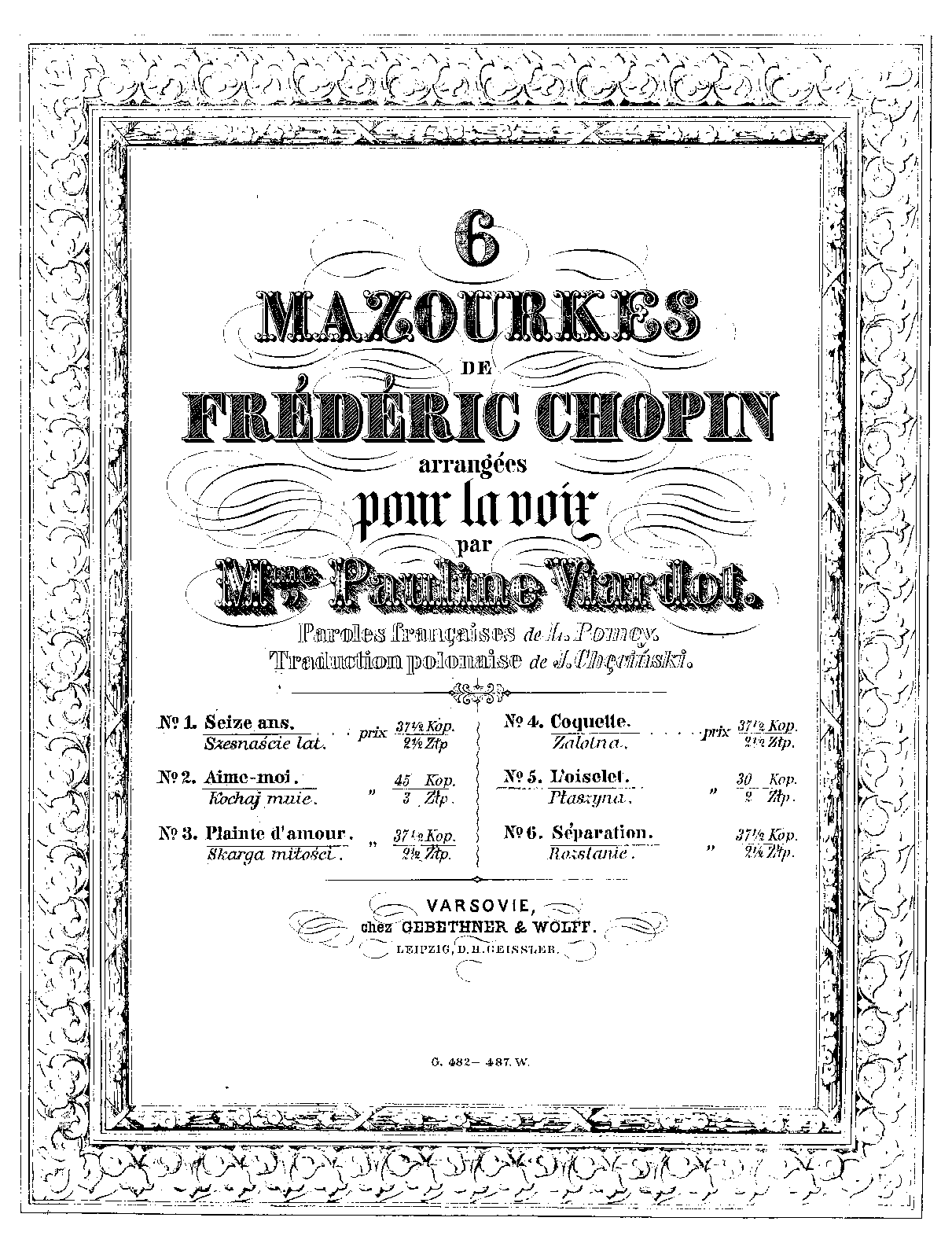 Publisher. Info. 6 Mazourkes de Frédéric Chopin arrangées pour la voix, No.5