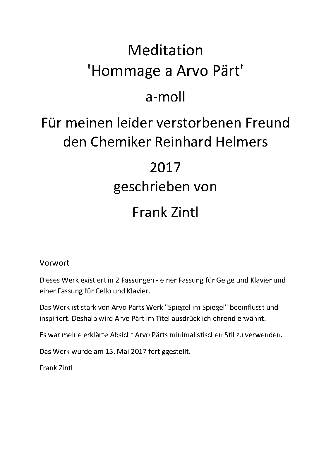 | Work Title | Meditation 'Hommage a Arvo Pärt' |