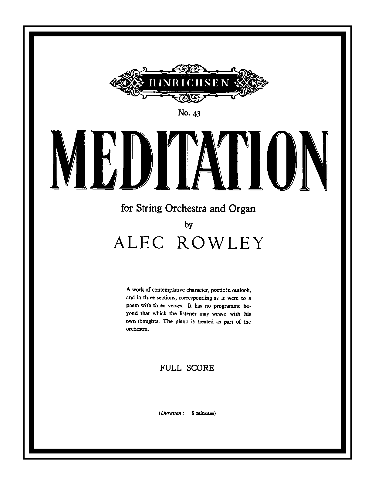| Genre Categories | Meditations; For organ, strings; Scores featuring the organ; |