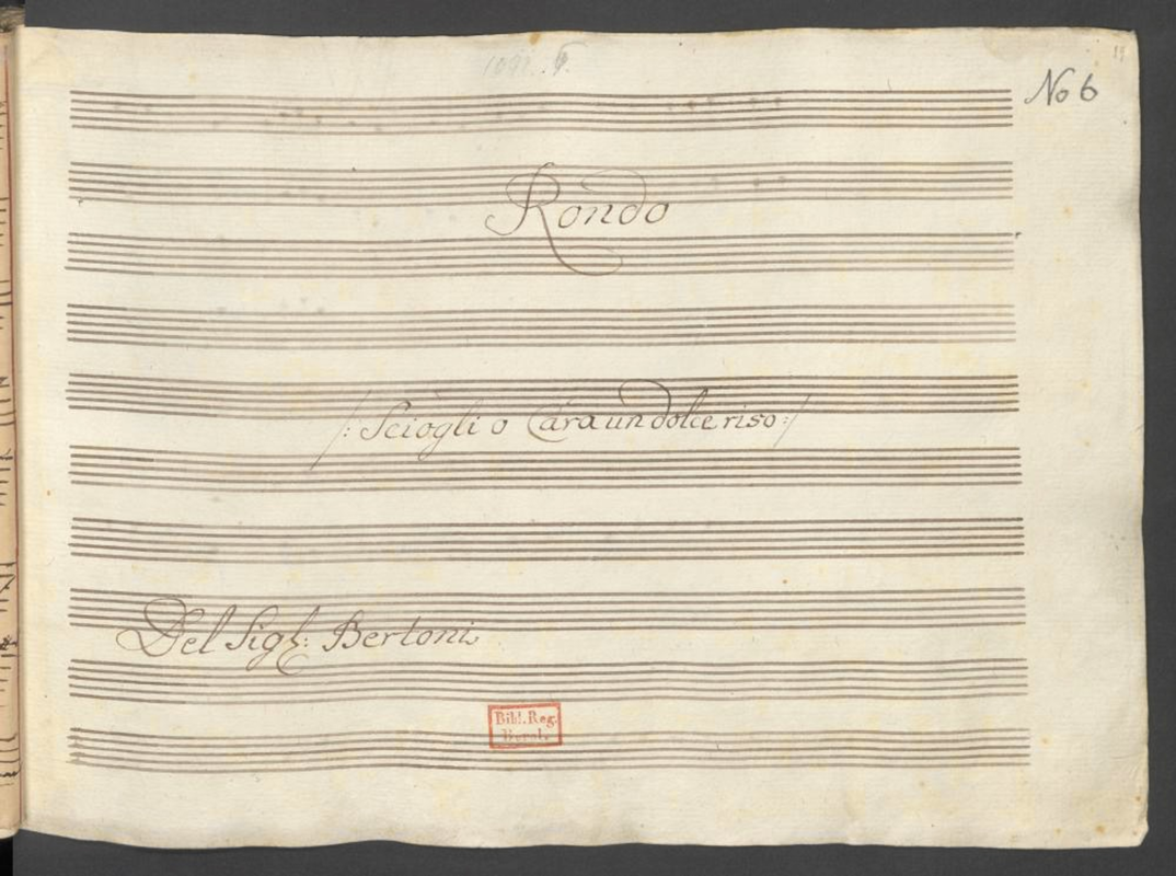 The extant aria (listed as a "rondo") includes flutes and horns. It is likely that the complete work had more instruments (probably trumpets and oboes, as expected for such a work). Most of the information has been drawn from the libretto.