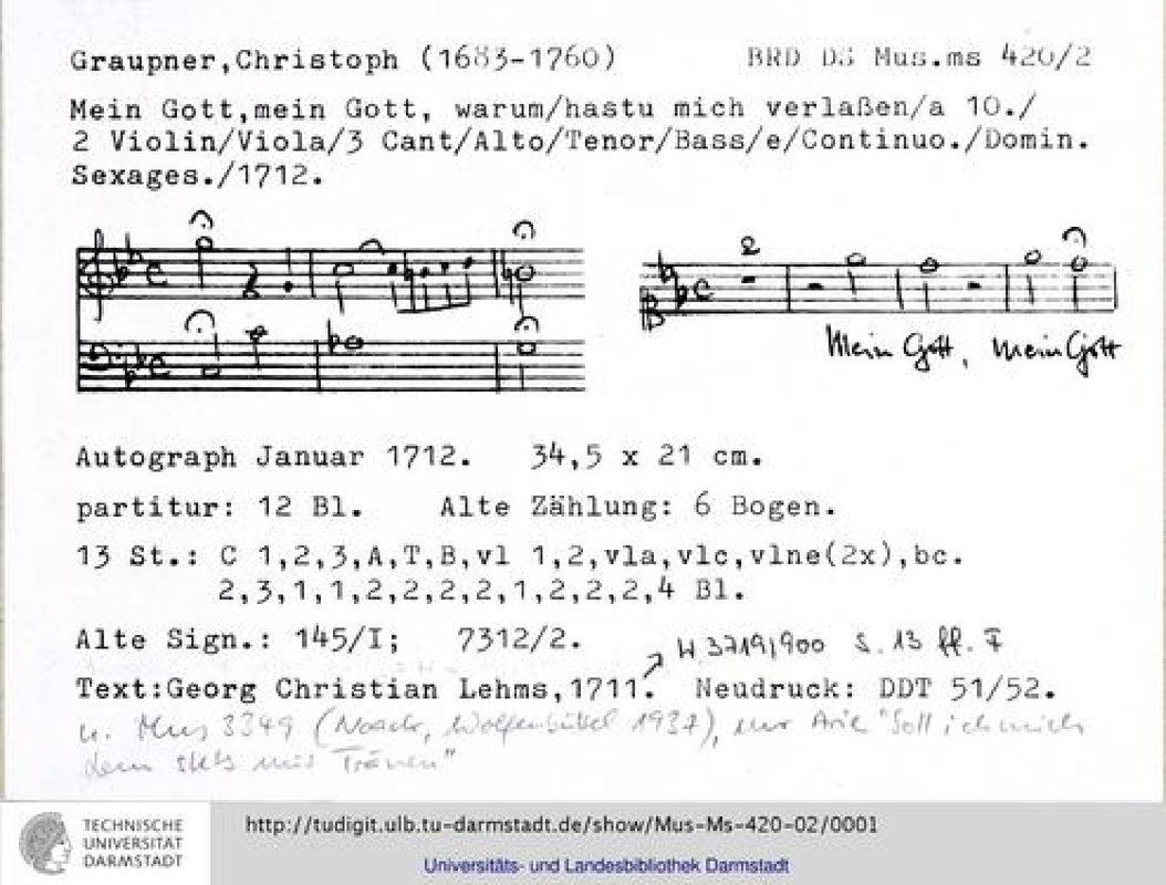 | Librettist | Georg Christian Lehms (1684–1717) |