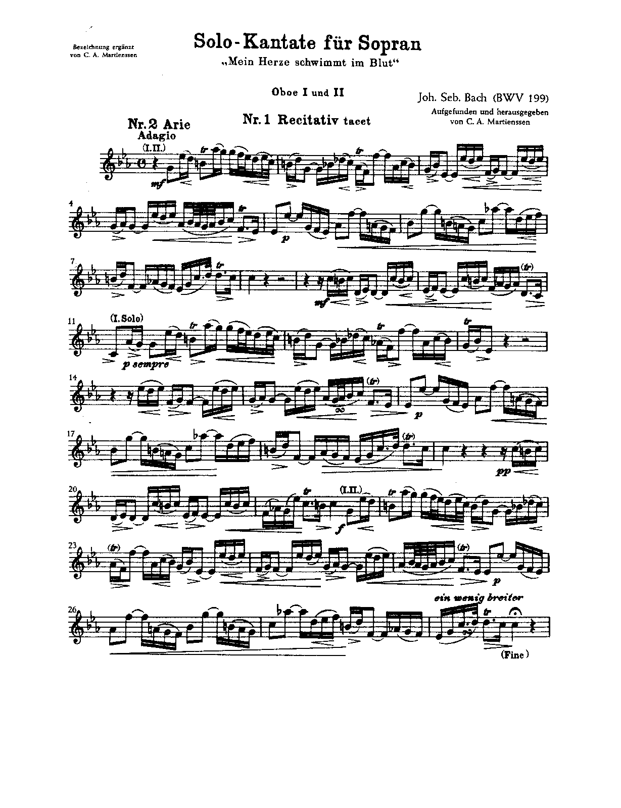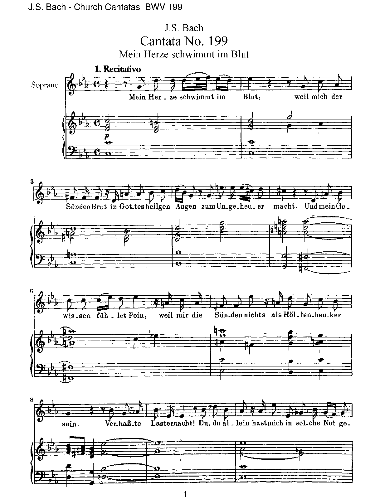 1. Recitative (soprano): Mein Herze schwimmt im Blut