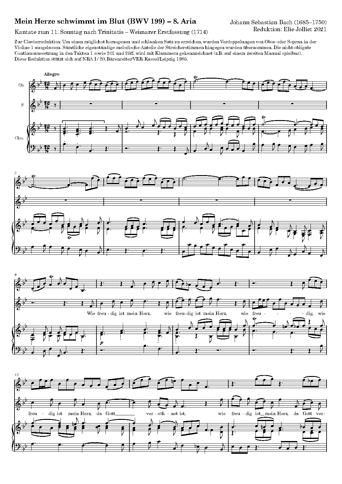 9 more: 2. Aria: 'Stumme Seufzer, stille Klagen' • 3. Recitative: 'Doch Gott muss mir genädig sein' • 4. Aria: 'Tief gebückt und voller Reue' • 5. Recitative: 'Auf diese Schmerzensreu' • 6. Chorale: 'Ich, dein betrübtes Kind'-1st weimar edition • 6. Chorale: 'Ich, dein betrübtes Kind'-2nd weimar edition • 7. Recitative: 'Ich lege mich in diese Wunden' • 8. Aria: 'Wie freudig ist mein Herz' • Engraving files (MuseScore)