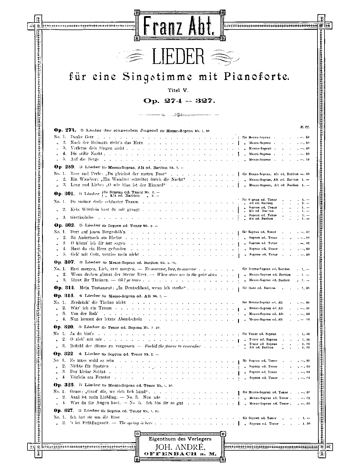 | Genre Categories | Lieder; Songs; For voice, piano; |