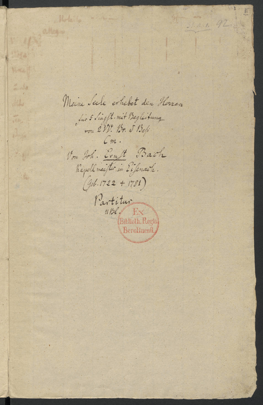 | Instrumentation | Voices: soprano, alto, tenor, bass; mixed chorus Orchestra: 2 horns, 2 violins, basso, organ |