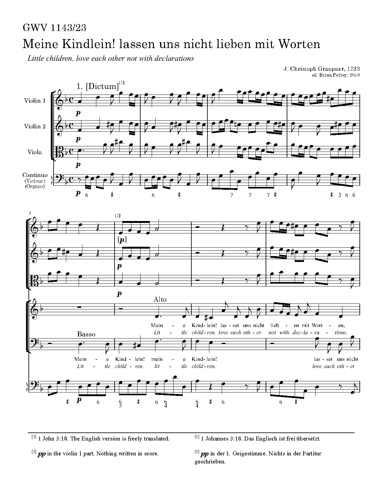 - 1. Dictum (Alto, Basso): Meine Kindlein! lasset uns nicht lieben mit Worten