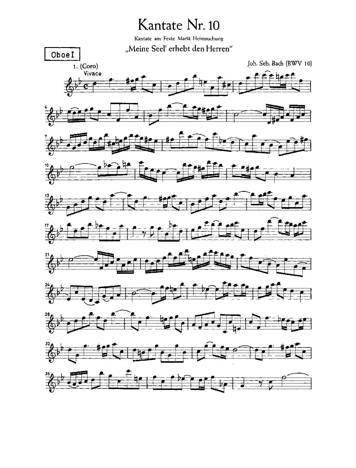 7 more: 2. Aria: 'Herr, der du stark und mächtig bist' • 3. Recitativo: 'Des Höchsten Güt und Treu' • 4. Aria: 'Gewaltige stößt Gott vom Stuhl' • 5. Duetto and Chorale: 'Er denket der Barmherzigkeit' • 6. Recitativo: 'Was Gott den Vätern alter Zeiten' • 7. Chorale: 'Lob und Preis sei Gott dem Vater' • Engraving files (MuseScore)