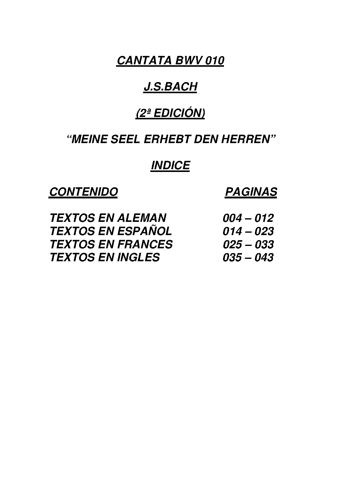 Opus/Catalogue NumberOp./Cat. No. BWV 10 ; BC A 175