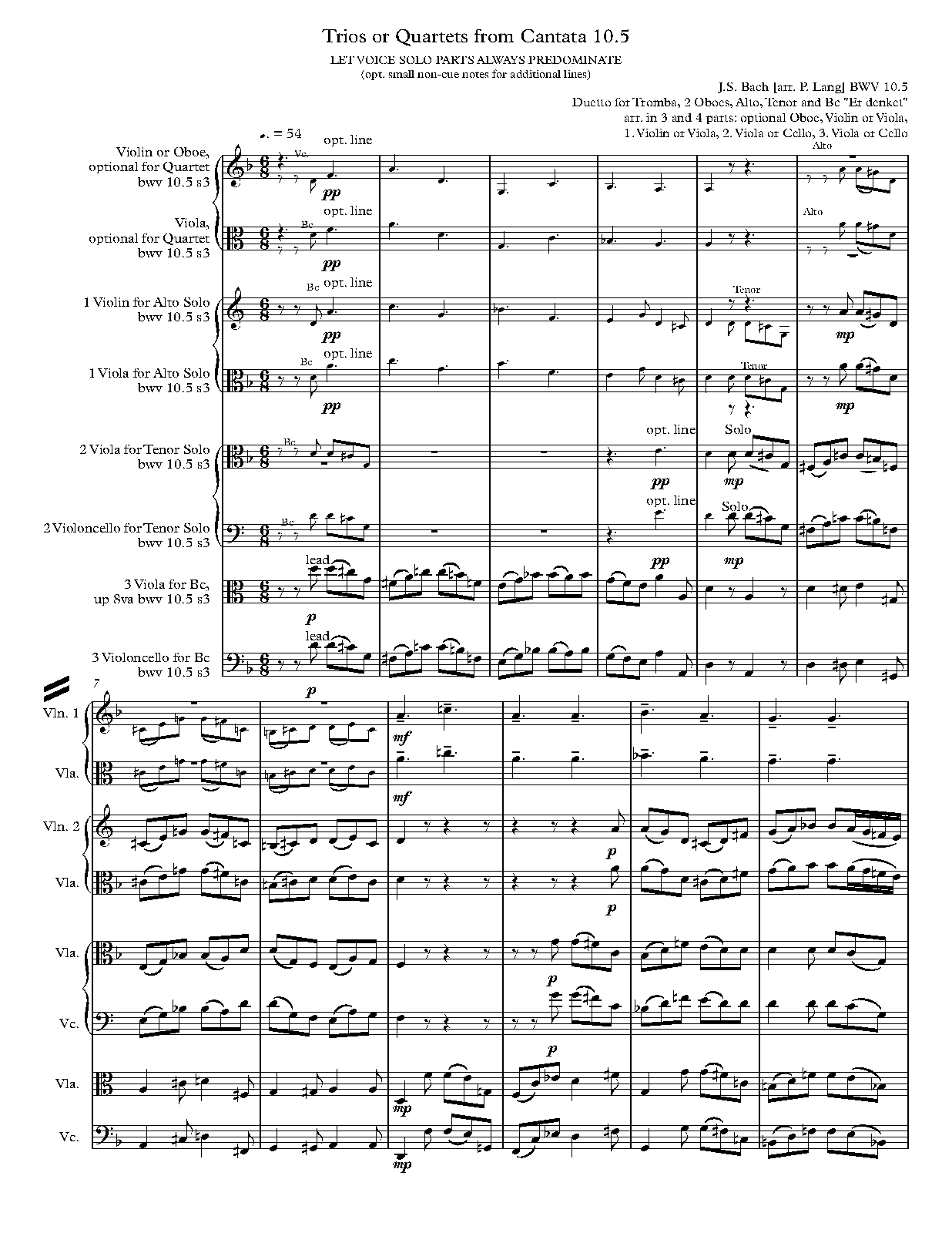 For Quartets and Trios: Oboe ad lib. and Strings (Lang)