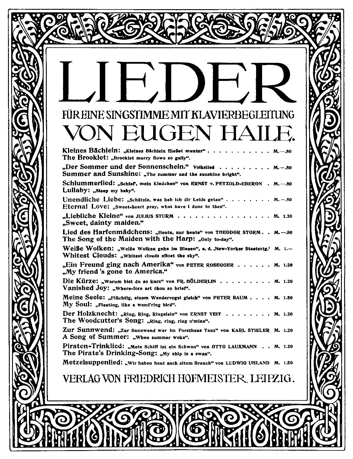 | Genre Categories | Lieder; Songs; For voice, piano; |
