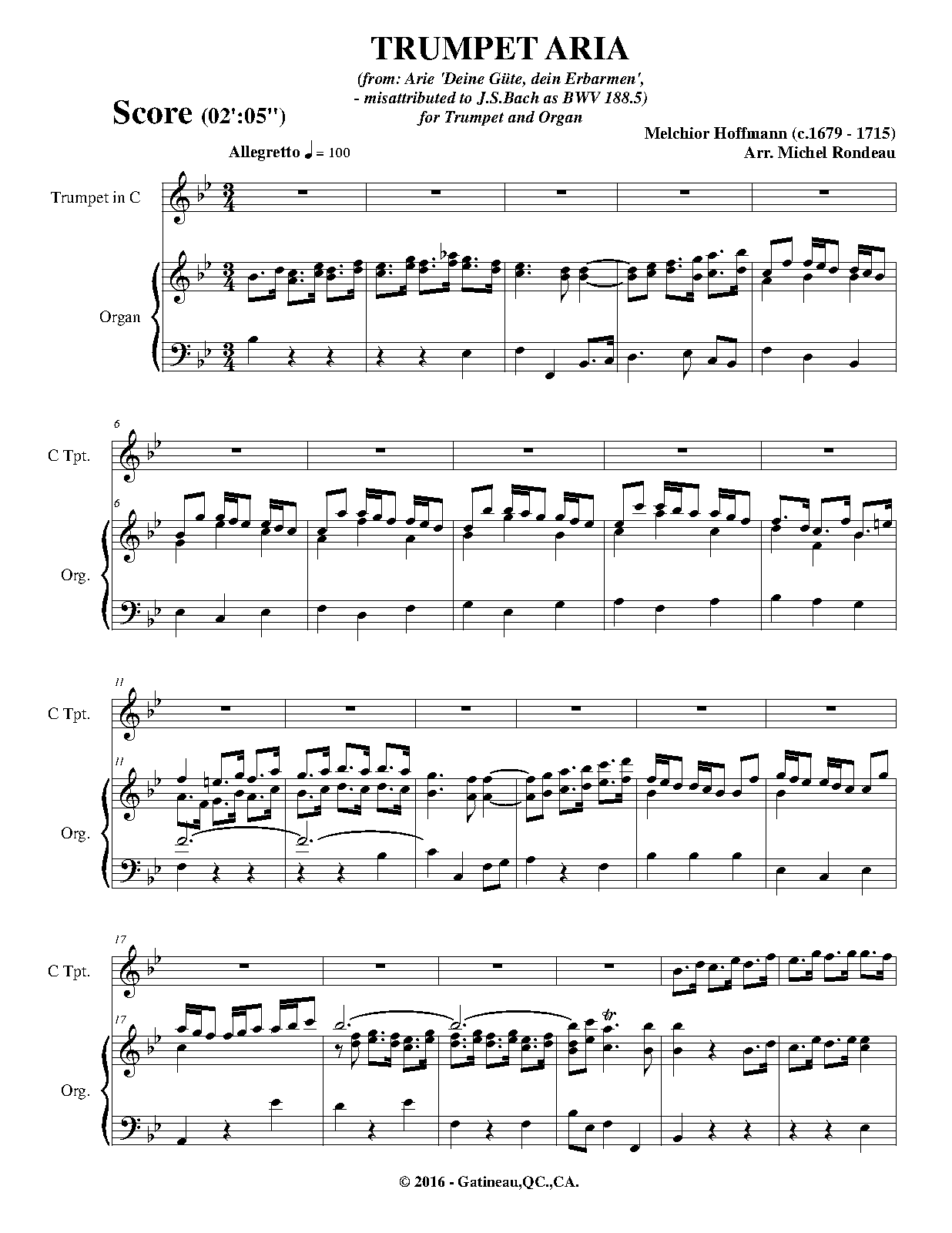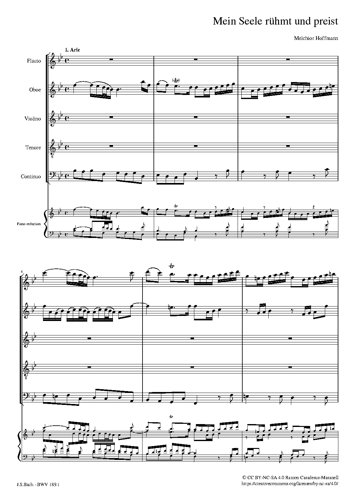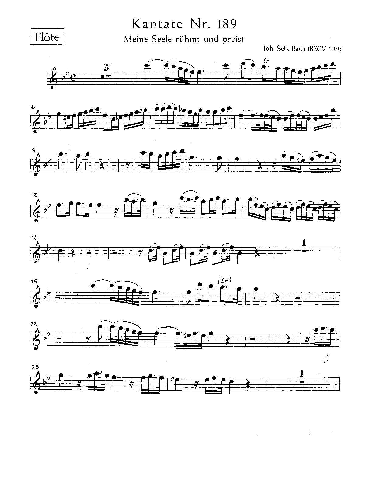 Extra Information The Bach-Cantatas page gives the instrumentation as 2 recorders instead of 1 flute, though the score they link to is the Dörffel edition (see above) that has 1 flute. Tagged for flute for now, but it would be interesting to find Hoffmann's original manuscript.