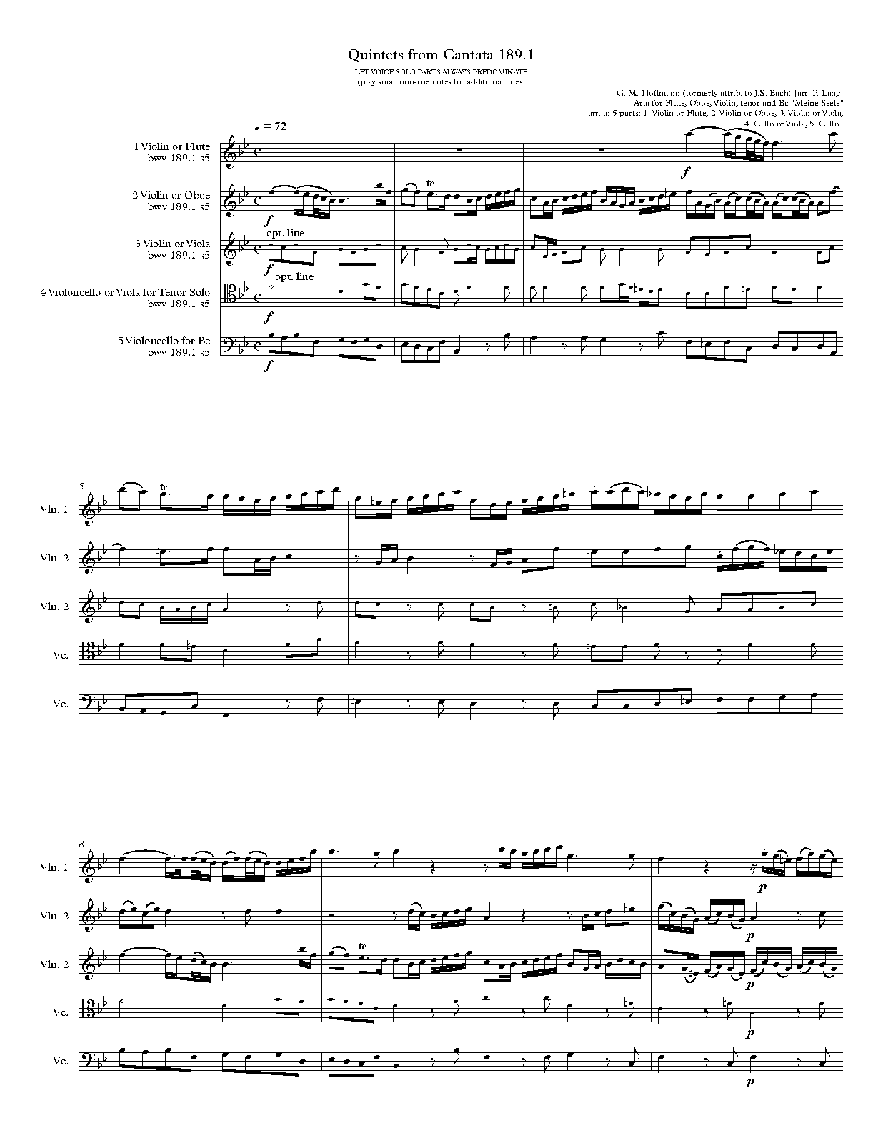 For Quintets: Flute and Oboe ad lib. and Strings (Lang)