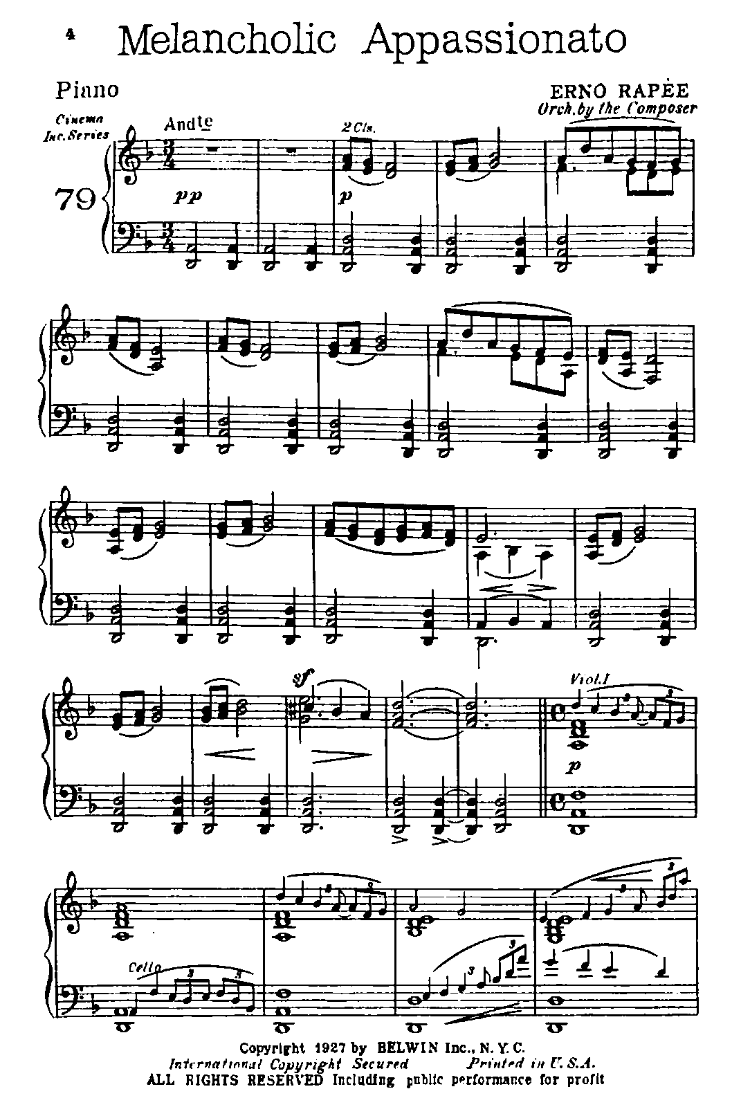 | Extra Information | Intended for use as accompaniment for silent movies. |