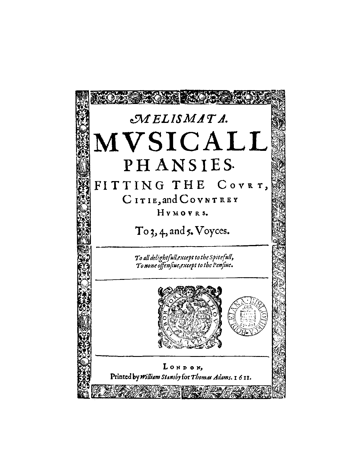 Musicall phansies fitting the court, citie and country humours, to 3, 4, and 5. voyces