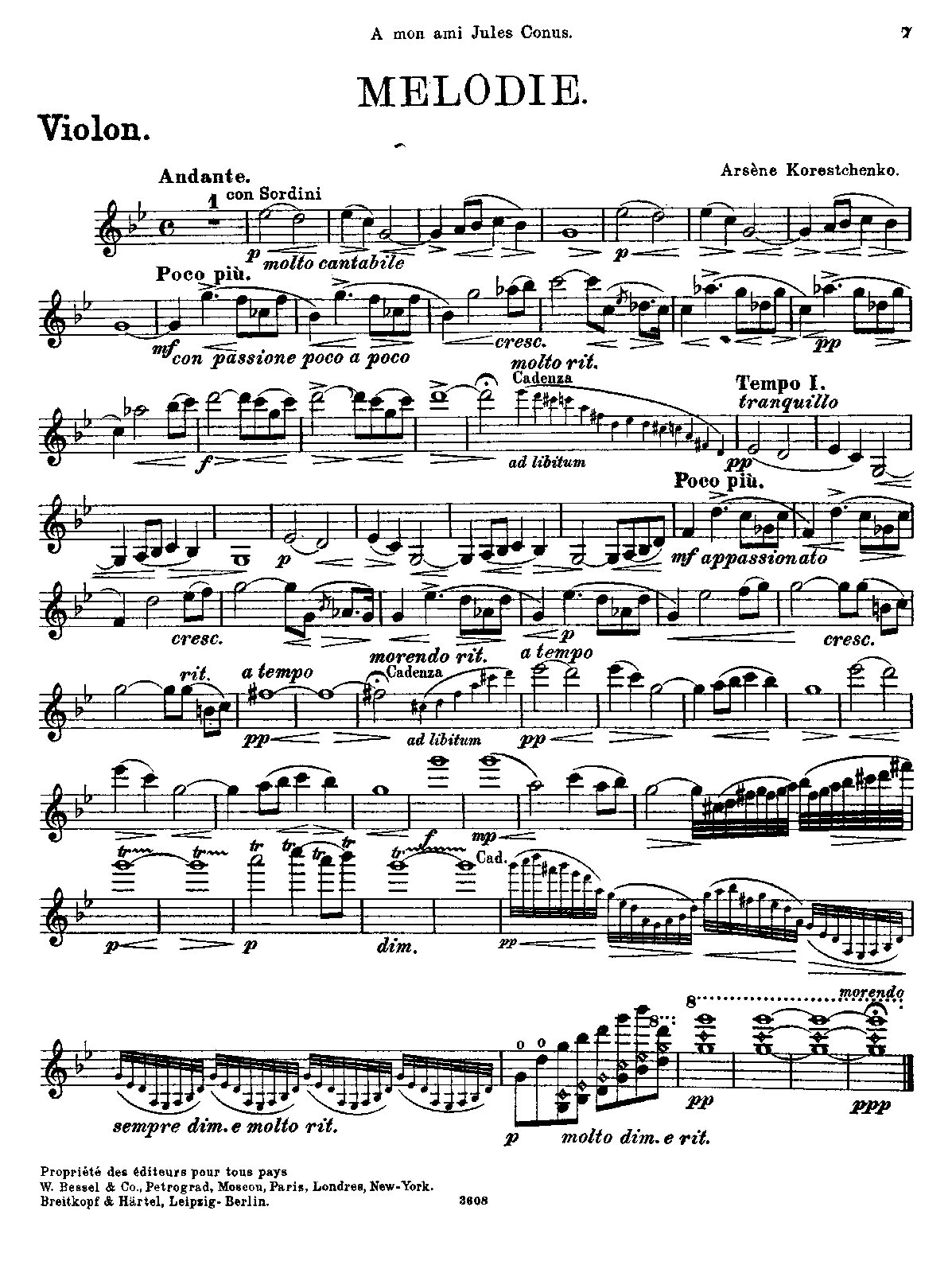 | Dedication | A mon ami Jules Conus (1869–1942) |
