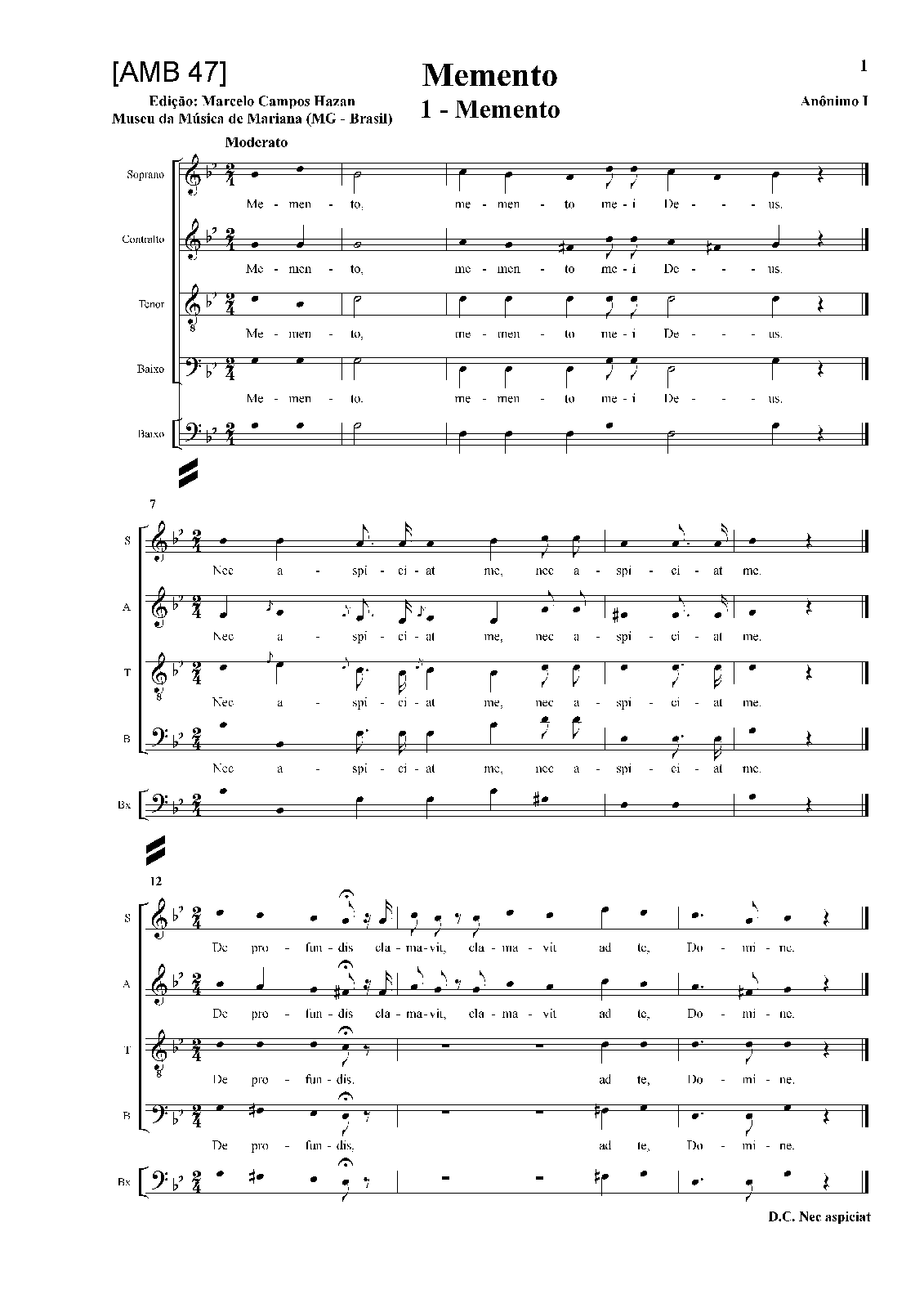 | Instrumentation | Chorus (Sopranos, Altos, Tenors and Basses) and Basses |