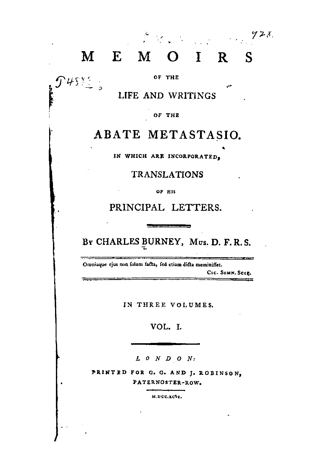 | Work Title | Memoirs of the life and writings of the Abate Metastasio |