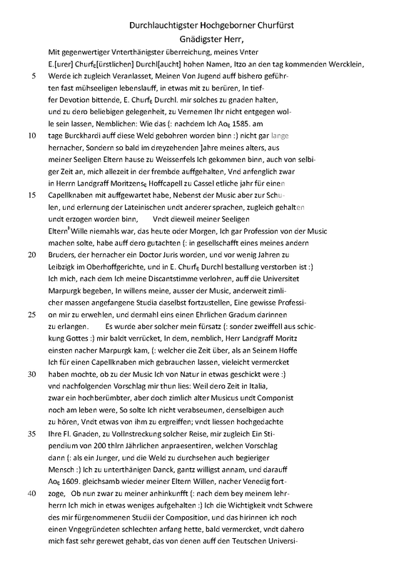 Memorial mit Lebenslauf und Bitte um Ruhestand. Mit Zeilennummern versehen. Siehe auch Übertragung in Druckschrift.