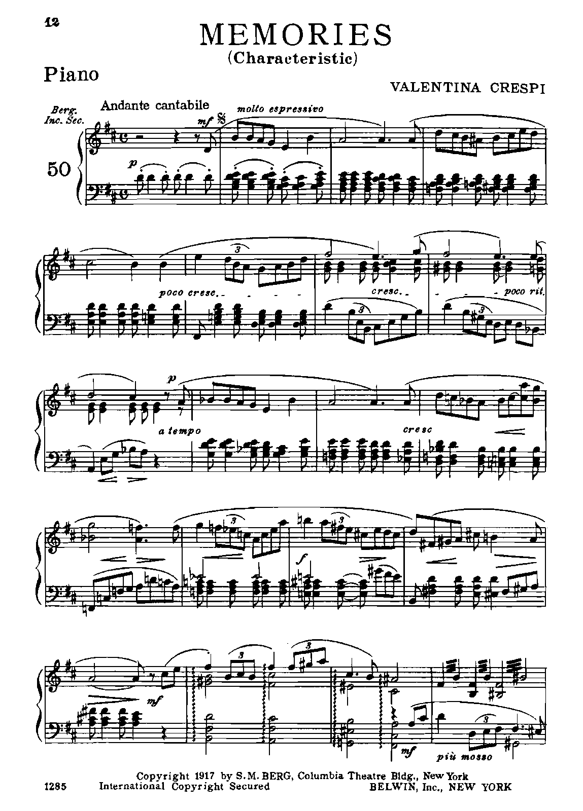 | Movements/SectionsMov'ts/Sec's | 1 piece (Andante cantabile) |