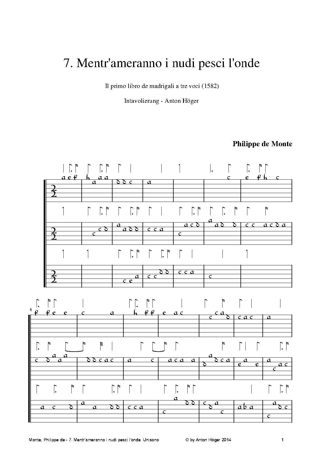 | First Publication | 1582 in Madrigali a 3 voci, Libro 1 (No.7) |
