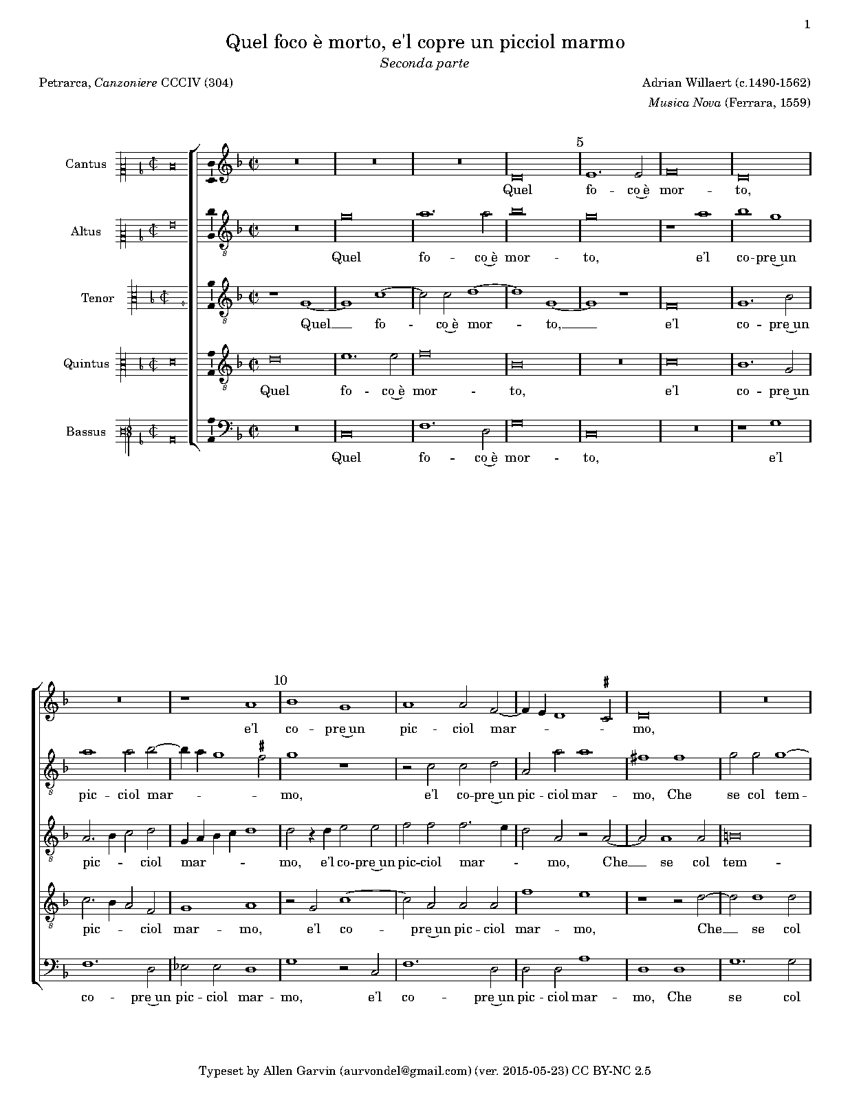 First Publication. 1559 in Musica Nova