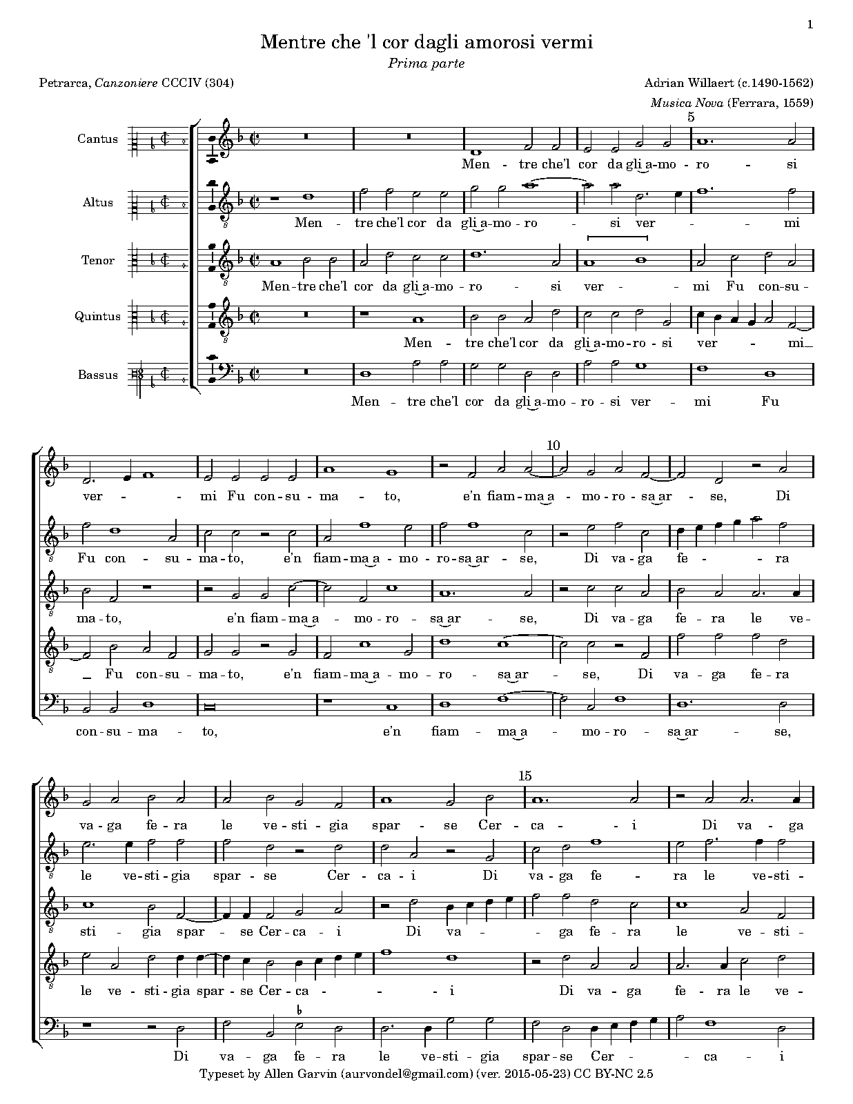 Mentre che 'l cor dagli amorosi vermi (Willaert, Adrian)