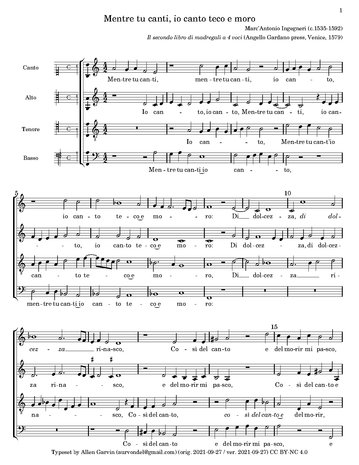 | First Publication | 1579 in Il secondo libro di madregali a 4 voci (Venice: Angelo Gardano) |