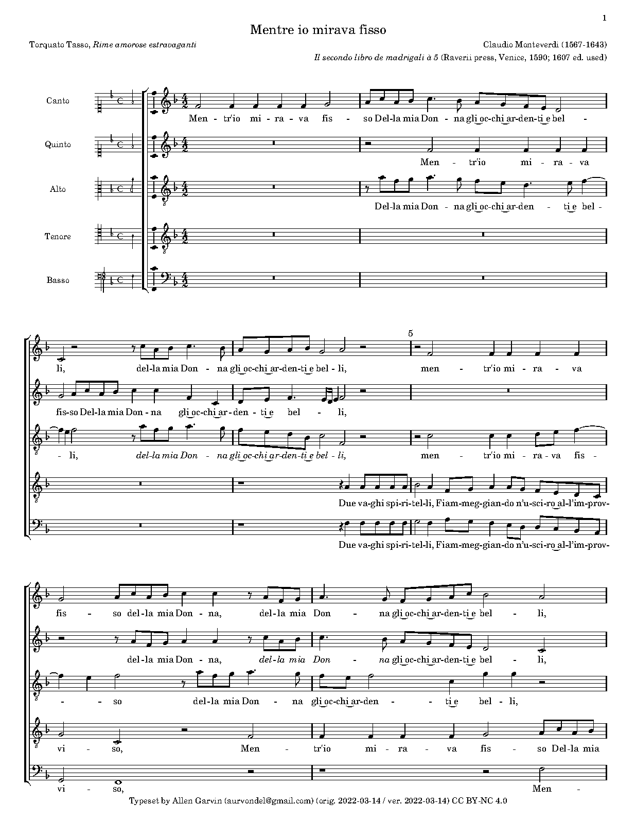 | First Publication | 1590 in Il secondo libro de madrigali à 5 (Venice: Raverii press) |