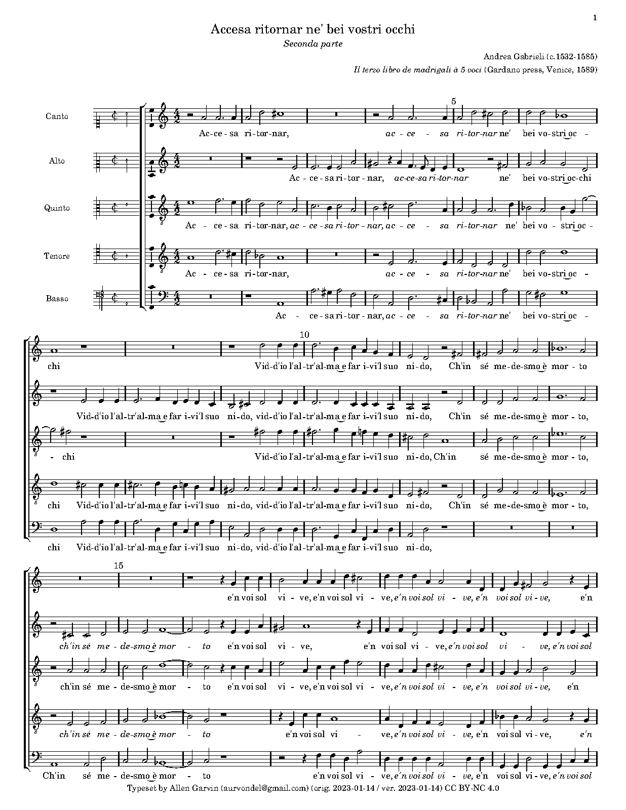| First Publication | 1589 in Il terzo libro de madrigali à 5 voci (Venice: Gardano press) |