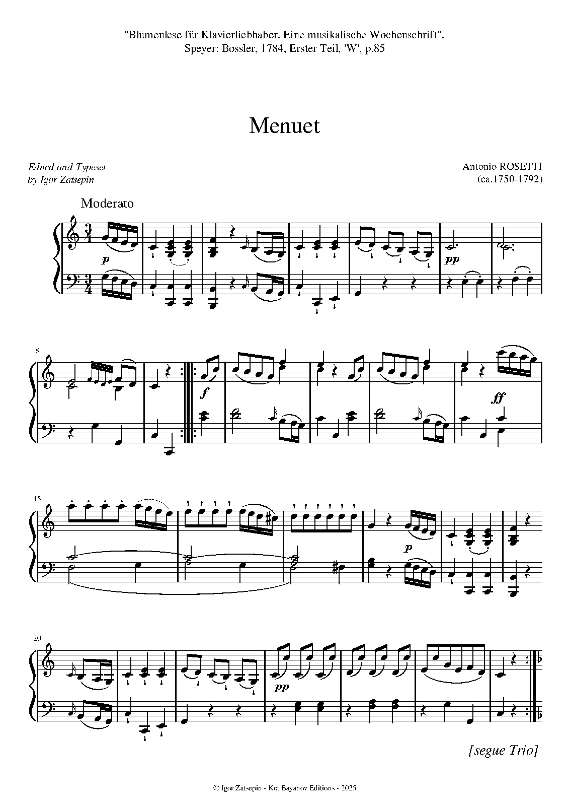 | Extra Information | "Blumenlese für Klavierliebhaber...", Speyer: Bossler, 1784 |